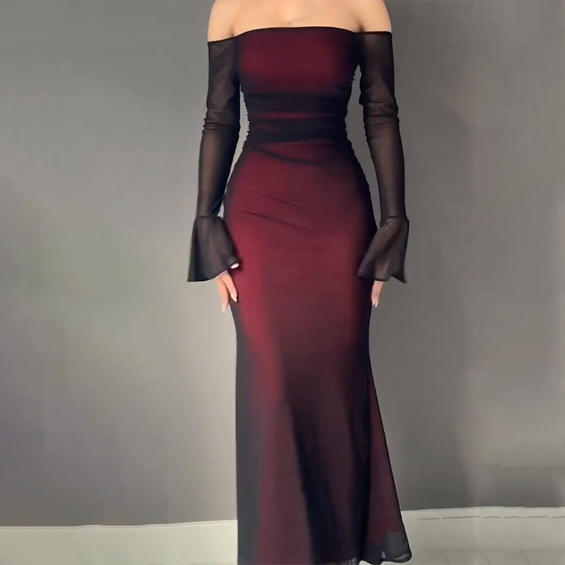 2025 Autumn European American Amazon Cross Border Foreign Trade New Fashion Solid Color Long Sleeve Strapless Bodycon Slim Fit Dress 2025 Autumn European American Amazon Cross Border Foreign Trade New Fashion Solid Color Long Sleeve Strapless Bodycon Slim Fit Dress
