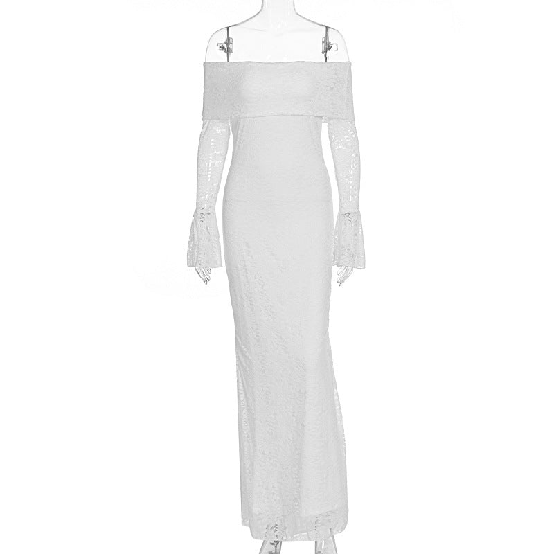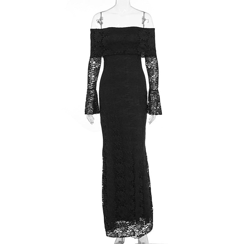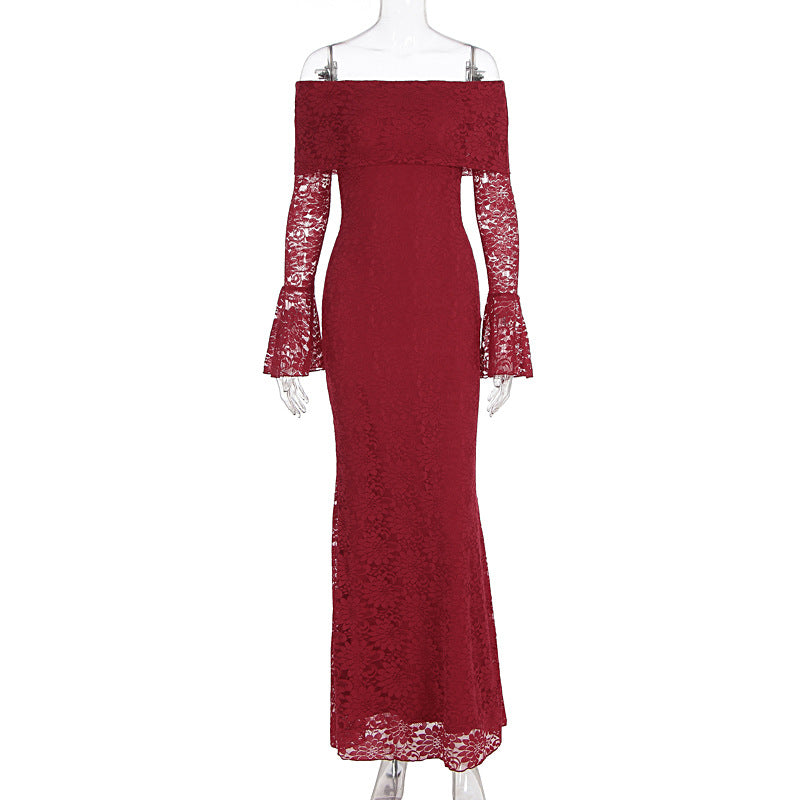2025 Cross-Border Foreign Trade Women's Long Dress, Amazon Hot Selling Off-Shoulder Sexy Lace Long-Sleeve Evening Dress - Alibaba