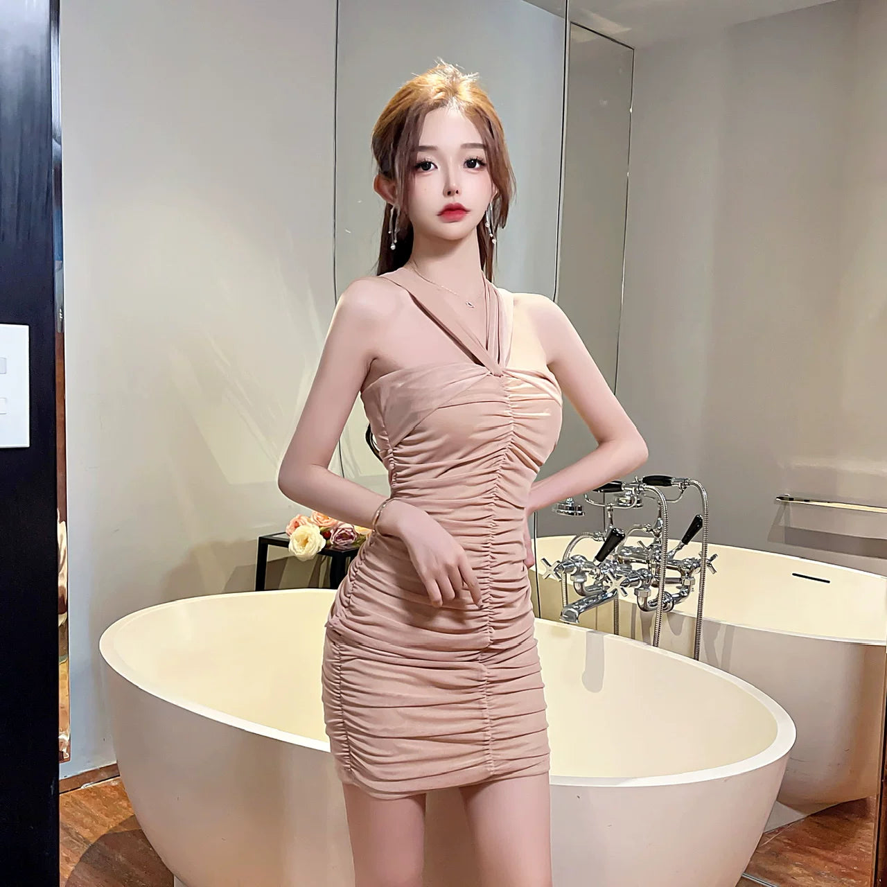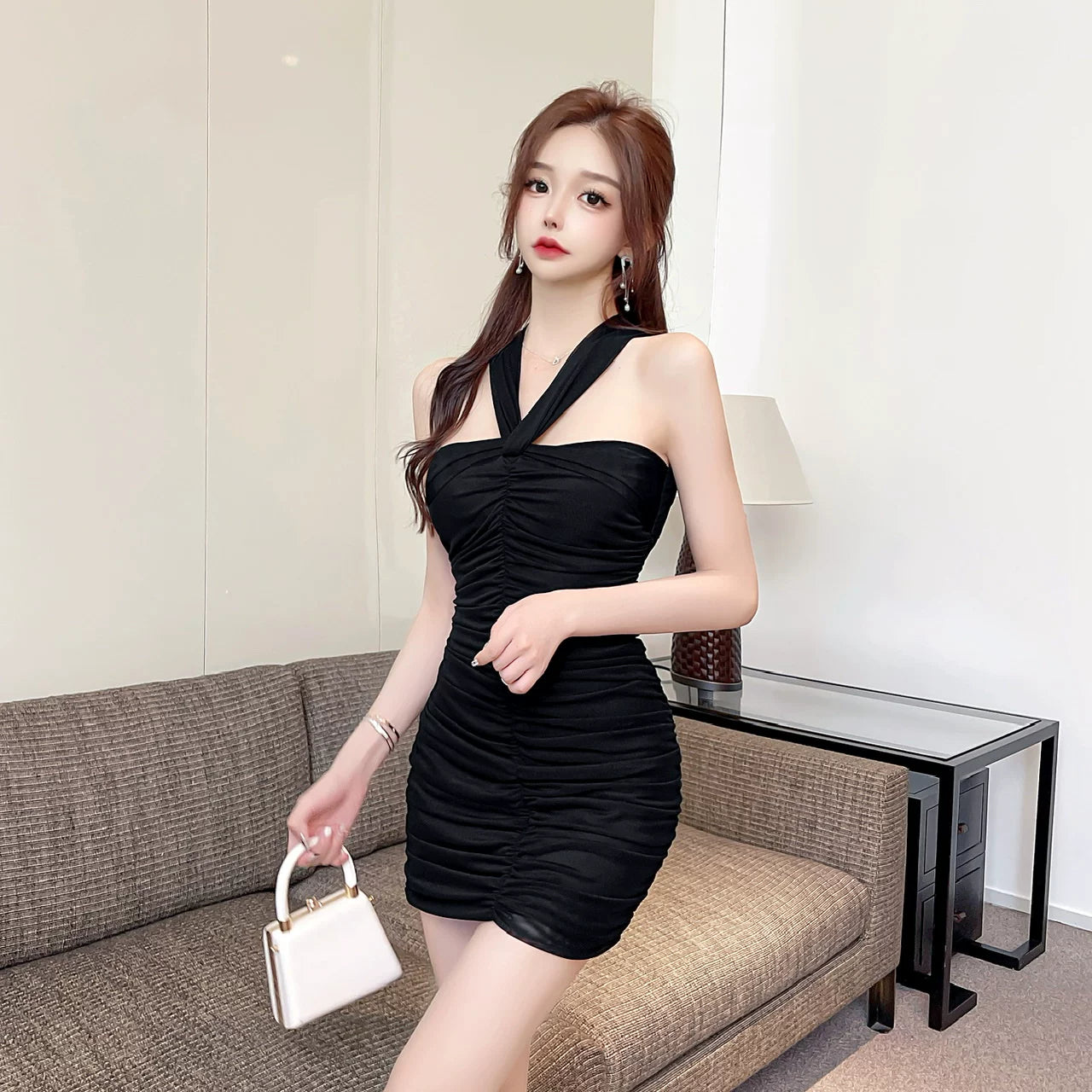 A stunning halter-neck strapless dress worn as an inner layer, exuding a pure and alluring vibe while slimming the waist and creating a sexy bodycon little black dress.A stunning halter-neck strapless dress worn as an inner layer, exuding a pure and allur