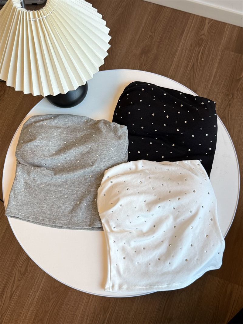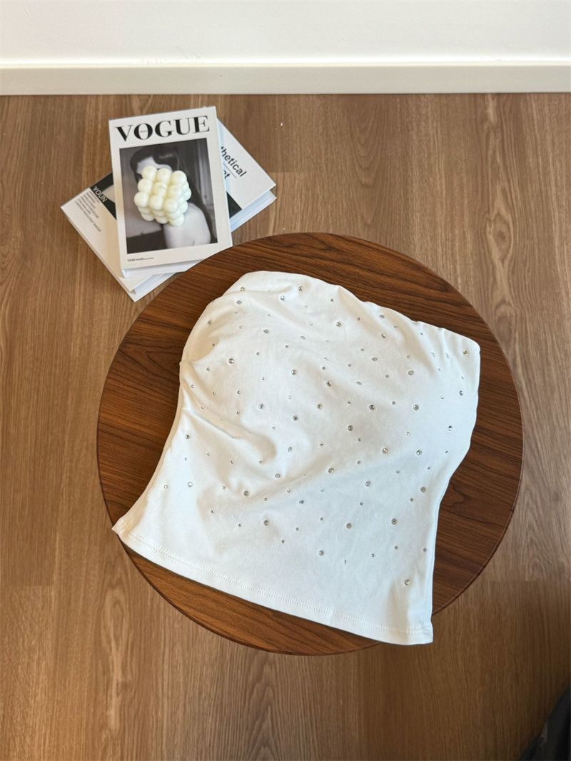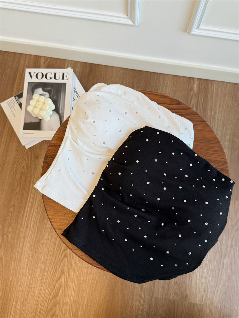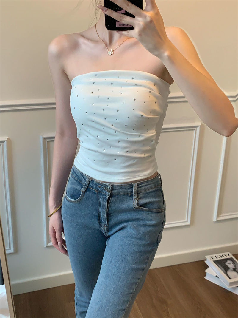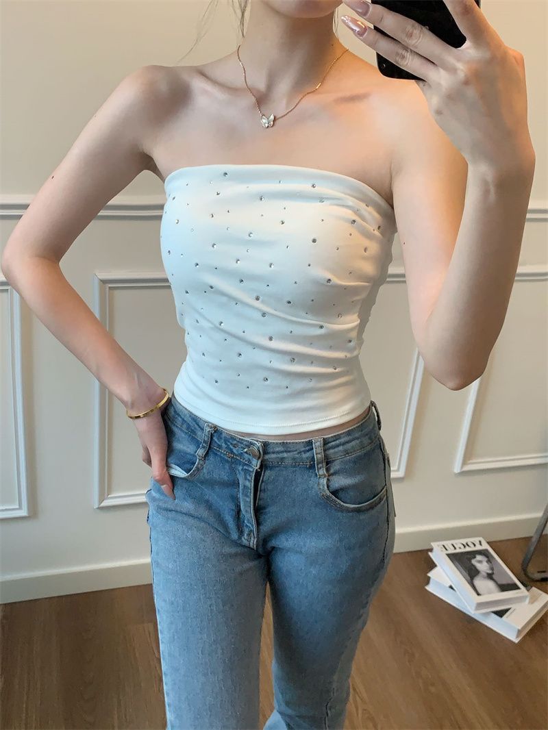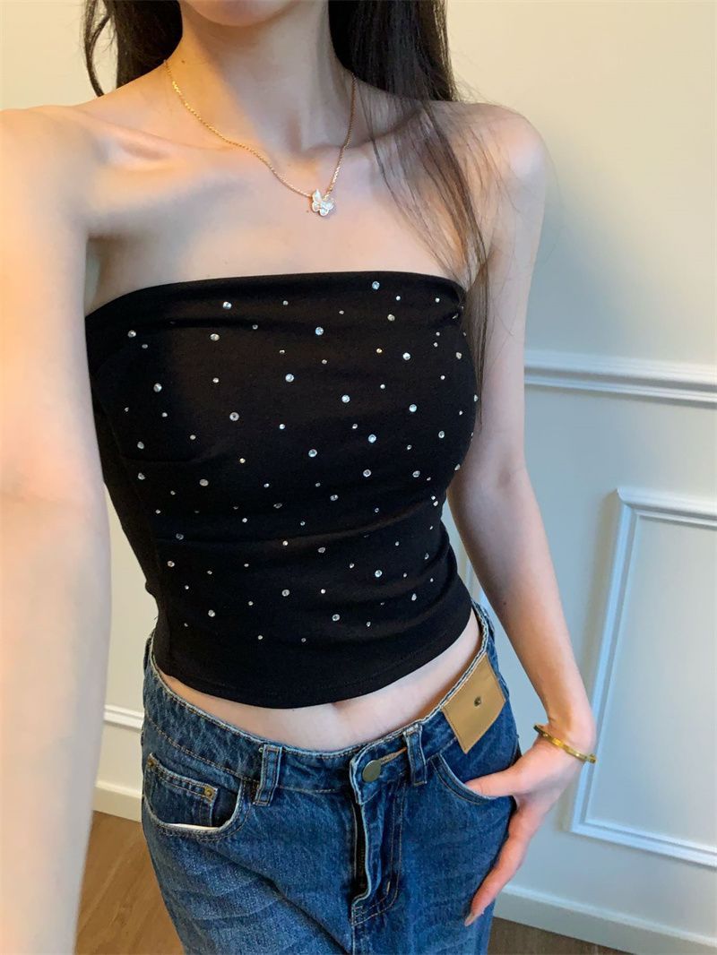 American style hot girl music festival outfit Rhinestone embellished tight fitting strapless bralette camisole women s summer cropped top