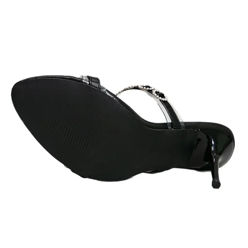 Autumn Fashion Open-toe Women's Shoes with A Mature and Elegant European and American Style, Diamond-encrusted Stiletto Heels