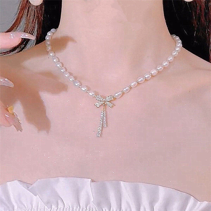 Butterfly Knot Pearl Necklace Women s 2022 New Style Trendy Light Luxury Design Sense Advanced Internet Celebrity Temperament Clavicle Chain Neck Chain