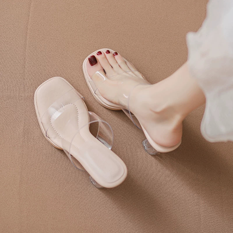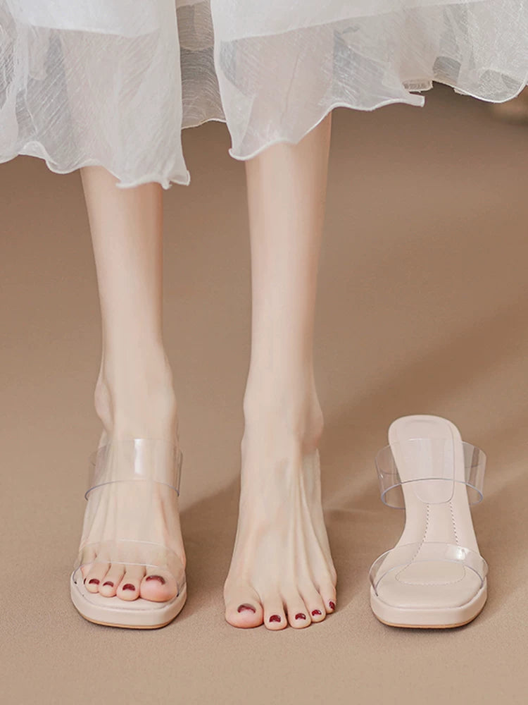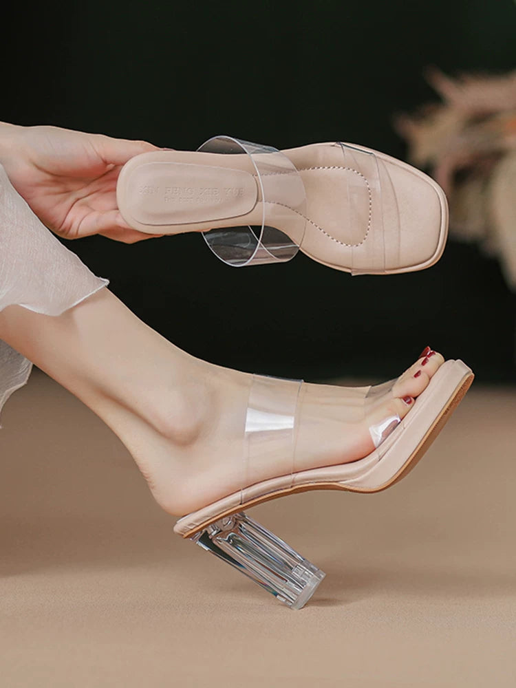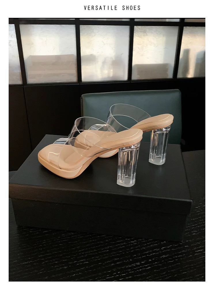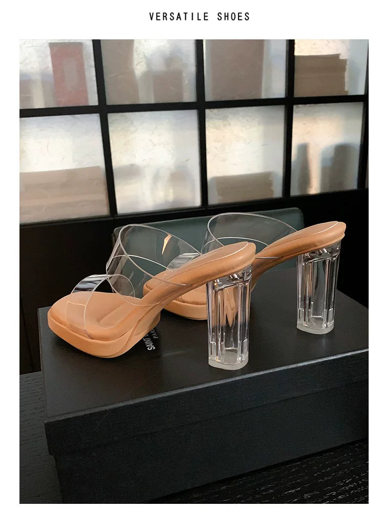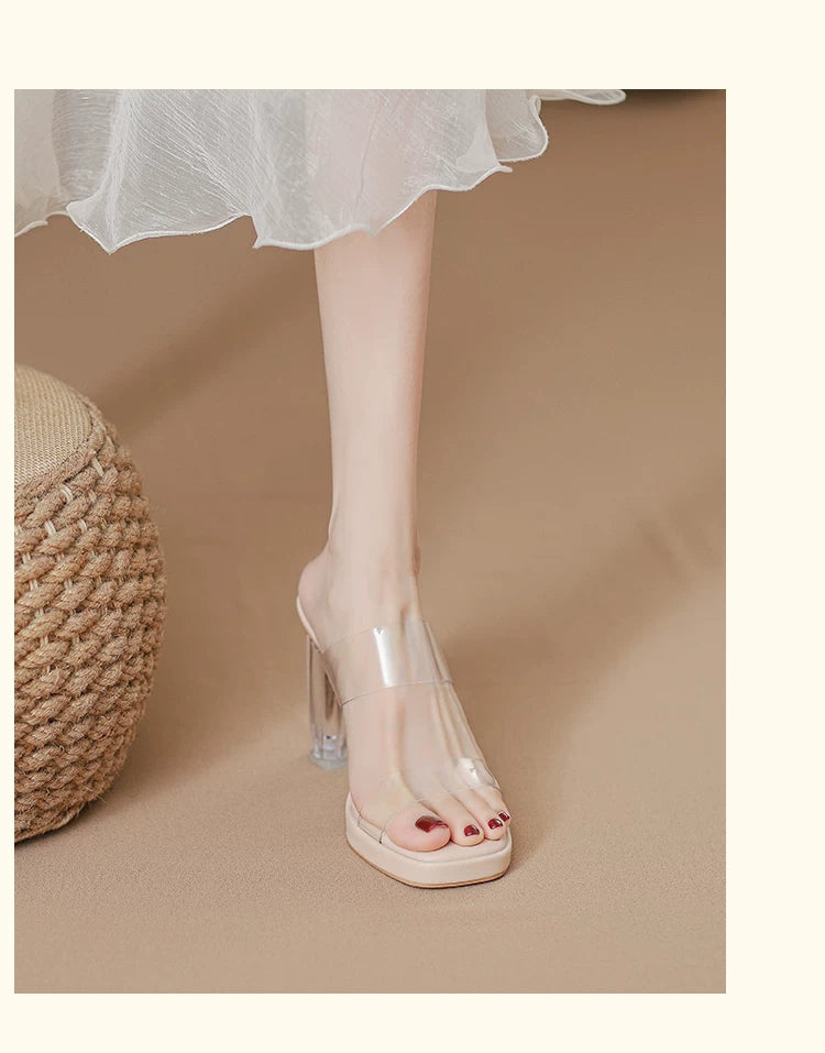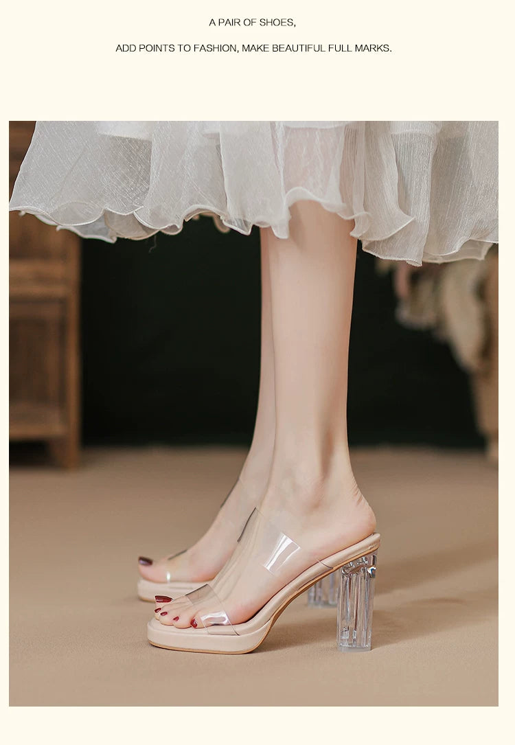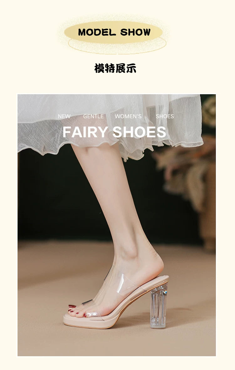 Comfortable, stepping-in-the-clouds feel~ Waterproof platform transparent high heels for women, 2026 summer new style crystal chunky heel sandals for women to wear on the outside.Comfortable, stepping-in-the-clouds feel~ Waterproof platform transparent hi
