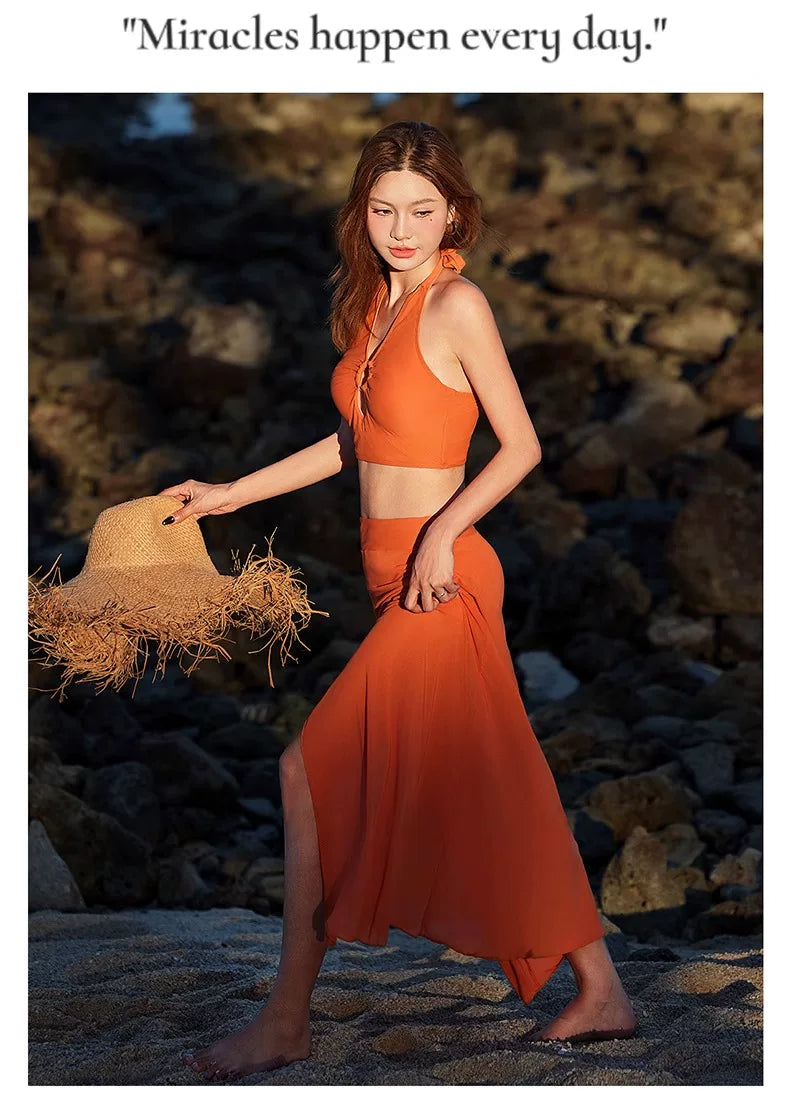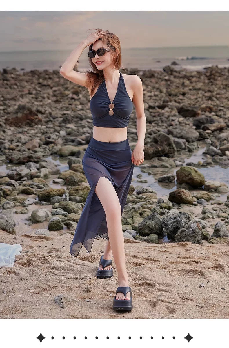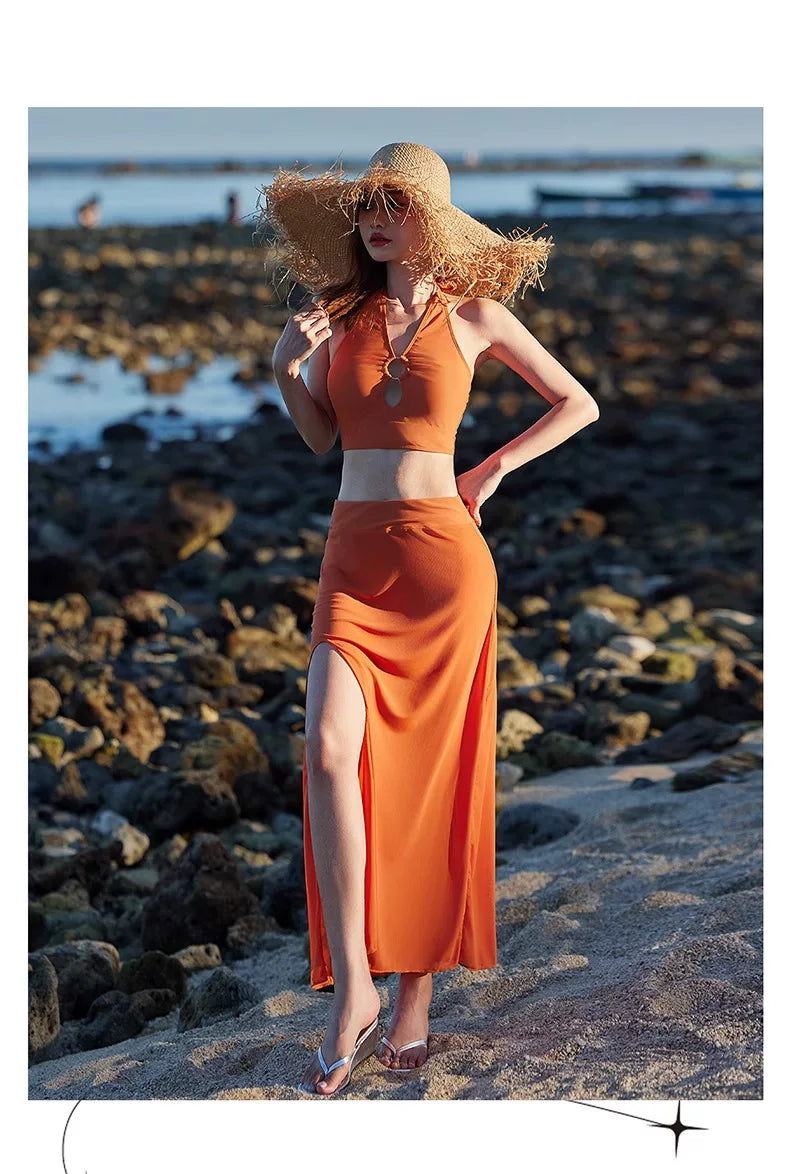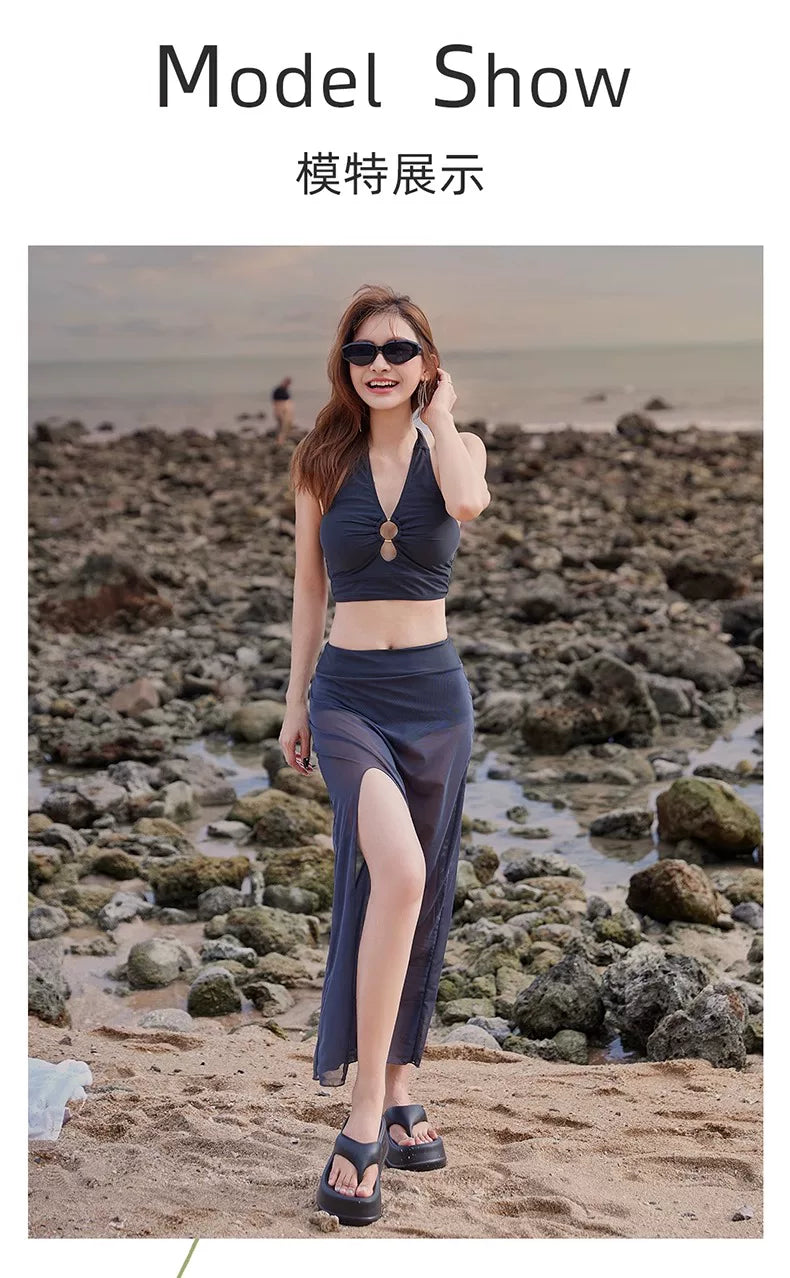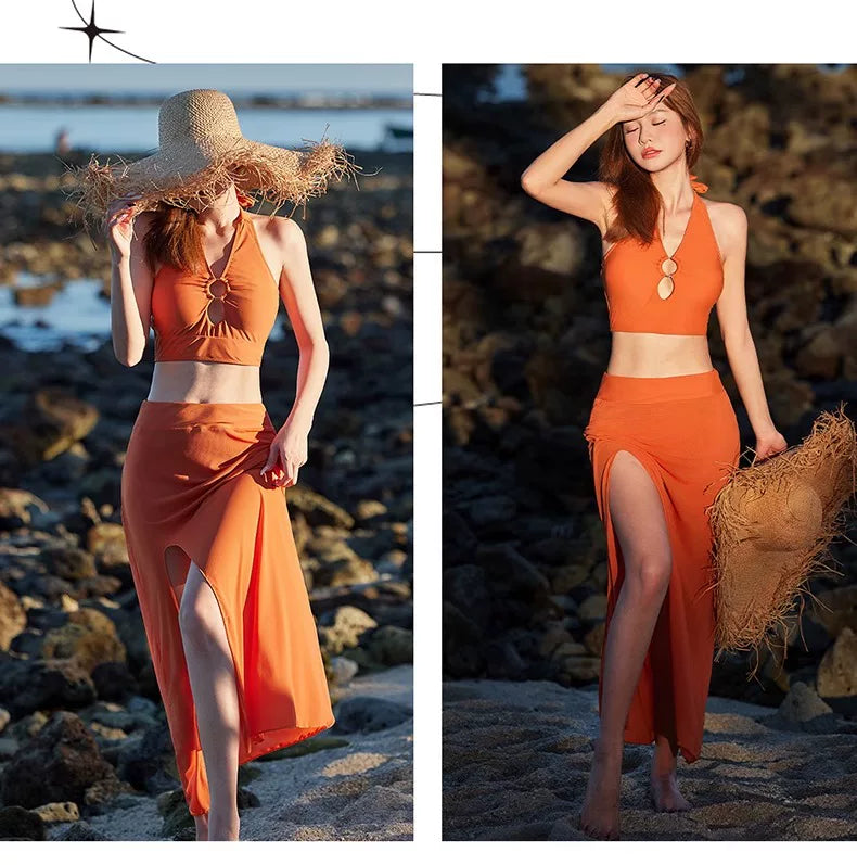 DK Women's Swimsuit 2025 New Style Long Skirt High-End Sexy Three-Piece Set Hot Spring Resort Fashion High-Waisted Bikini