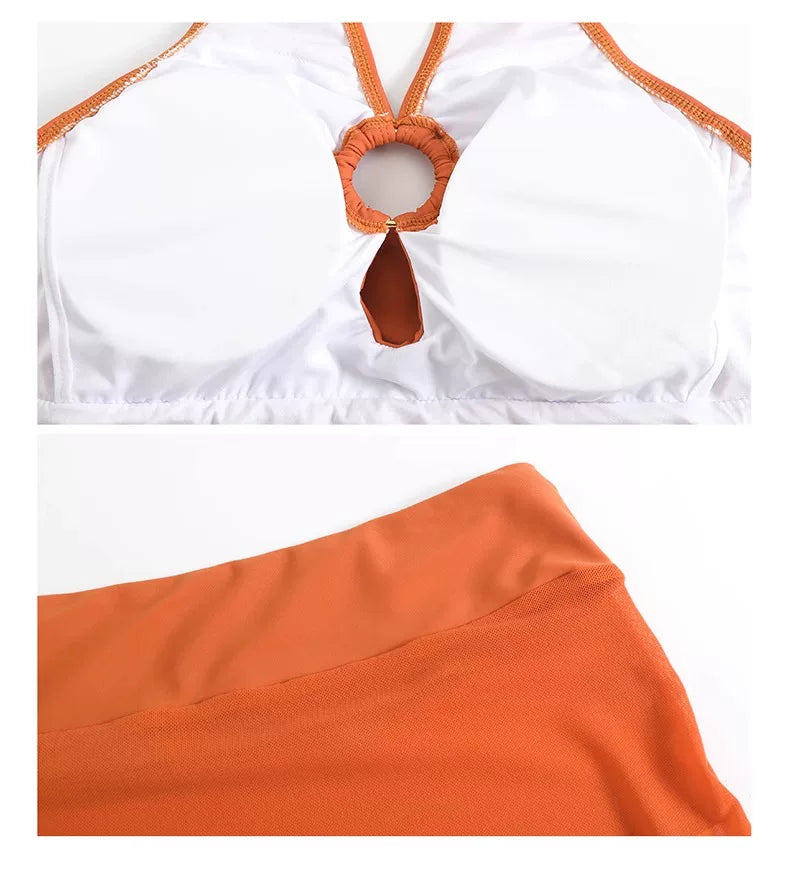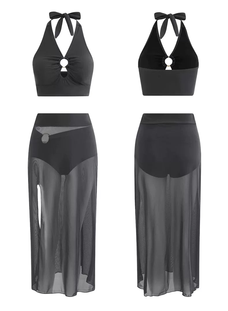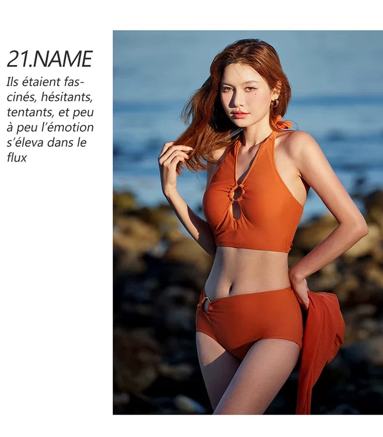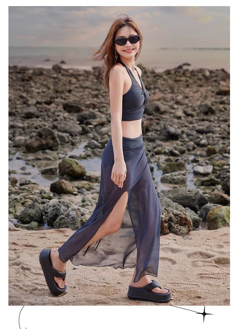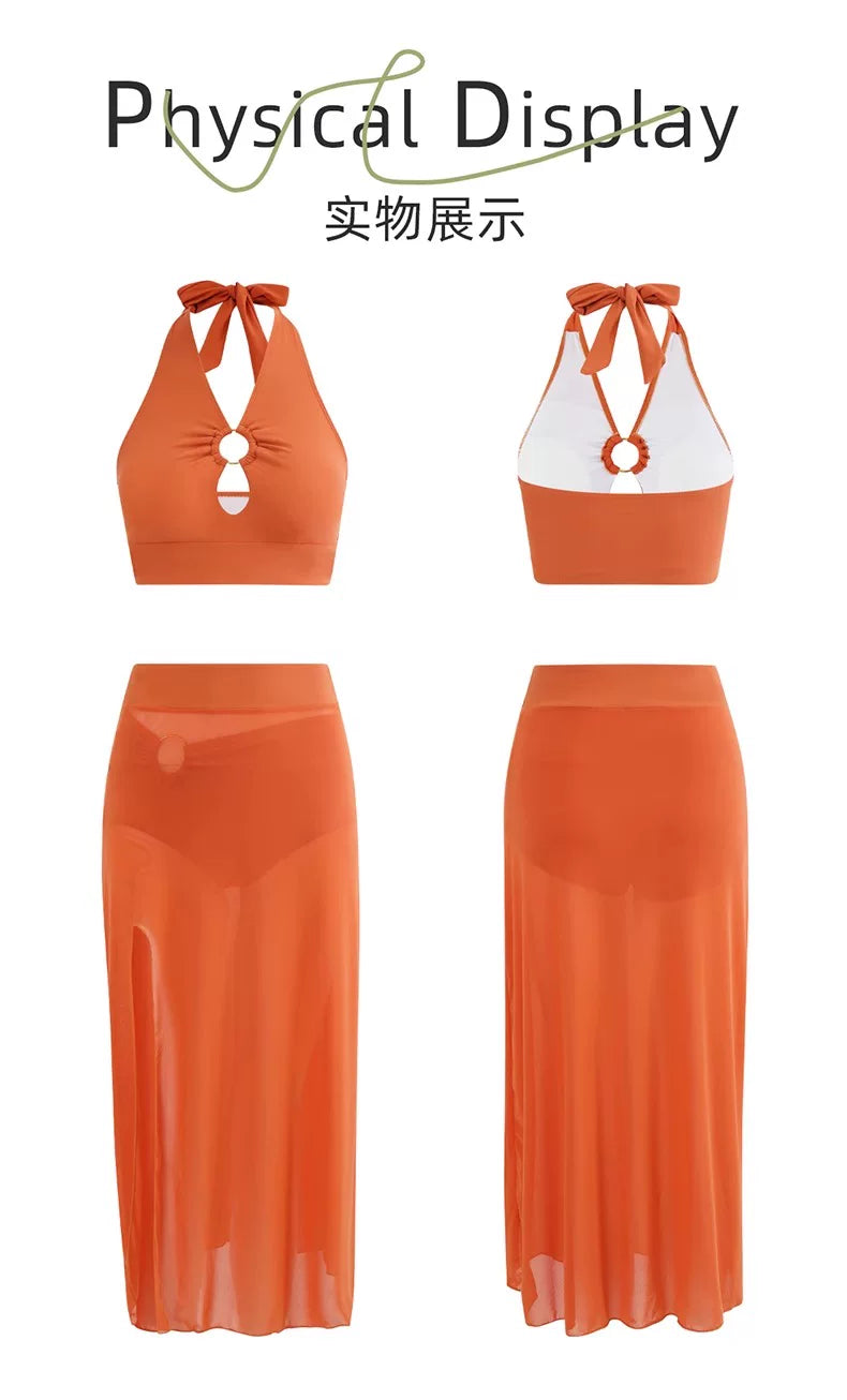 DK Women's Swimsuit 2025 New Style Long Skirt High-End Sexy Three-Piece Set Hot Spring Resort Fashion High-Waisted Bikini