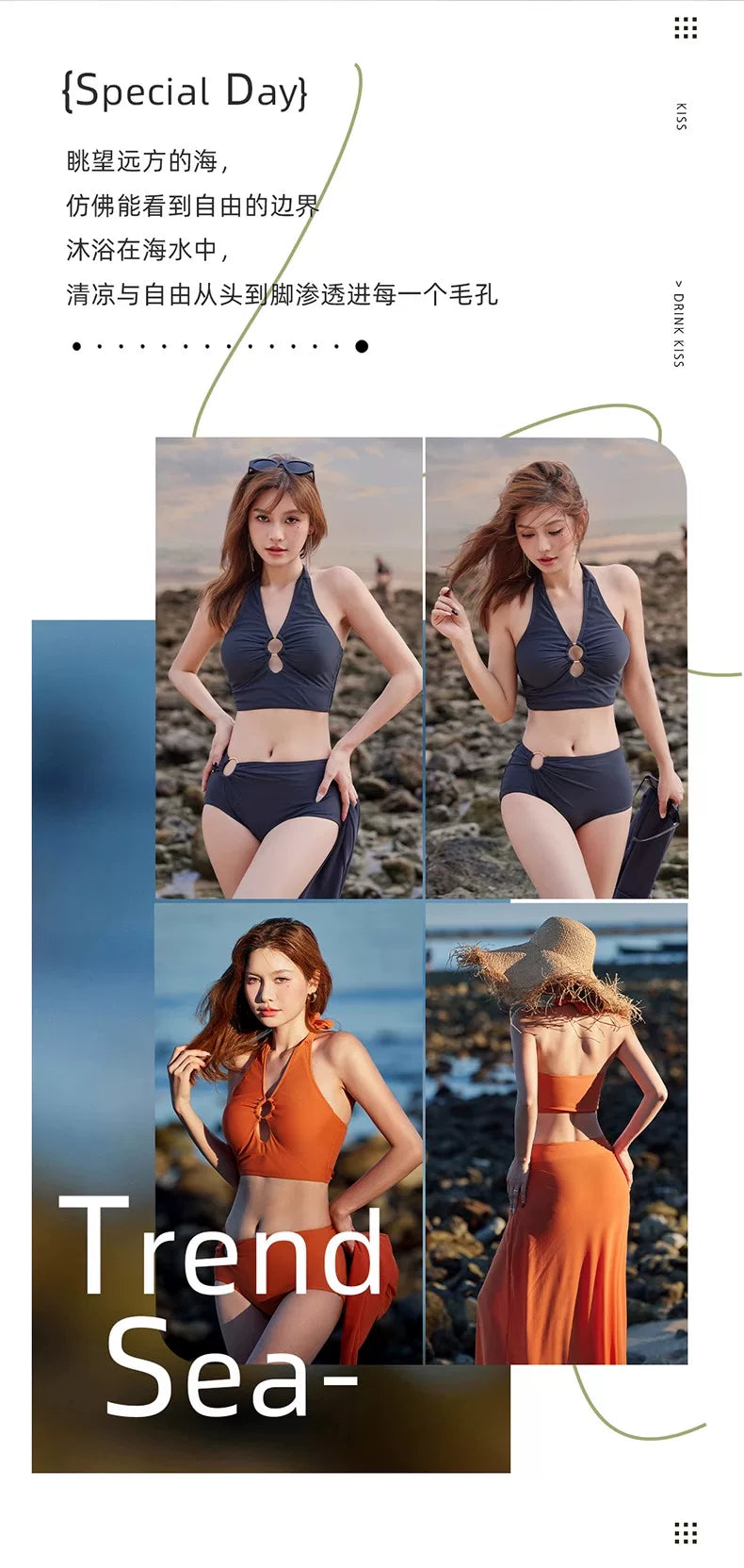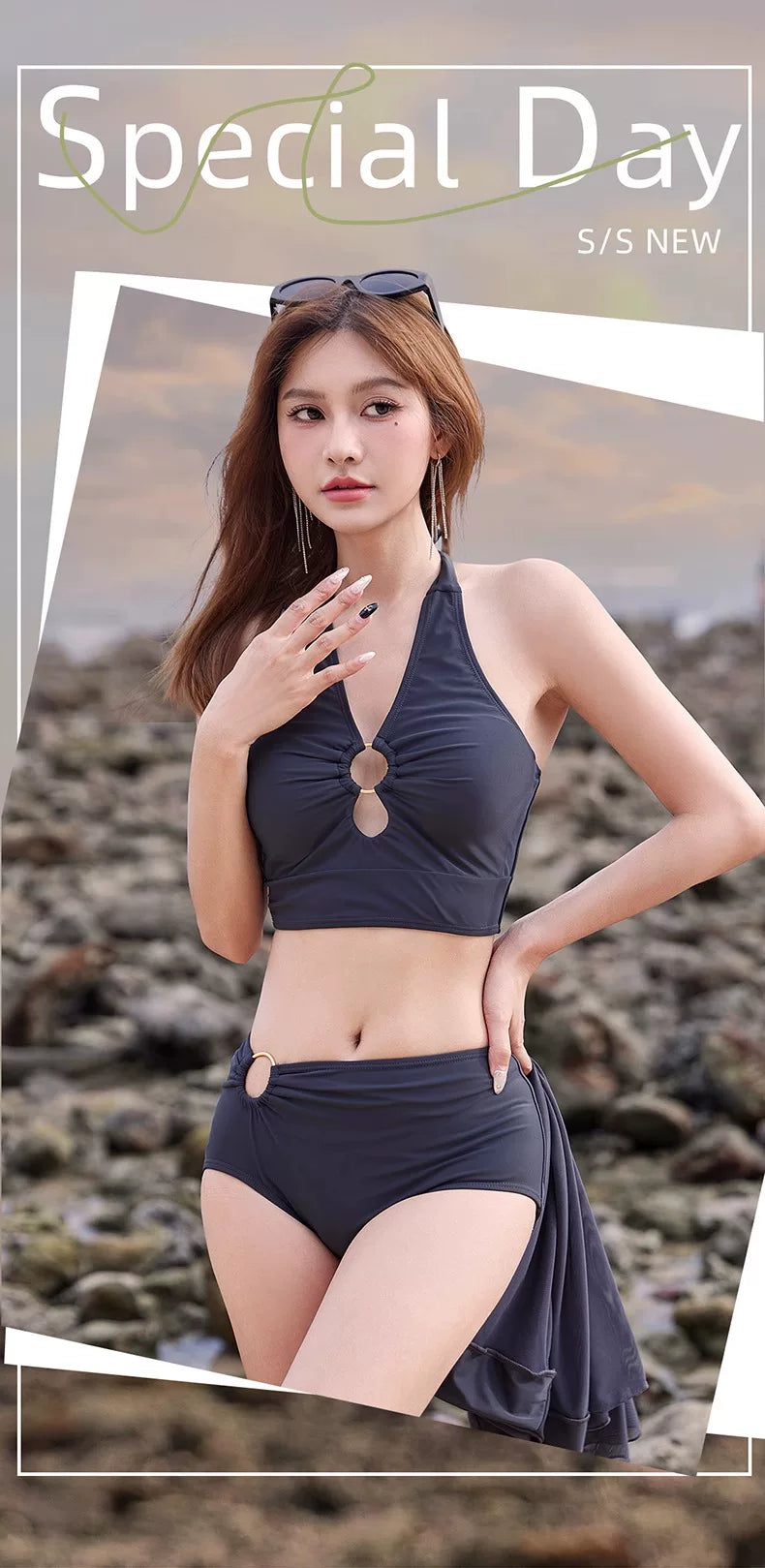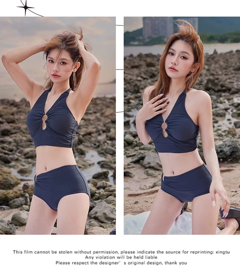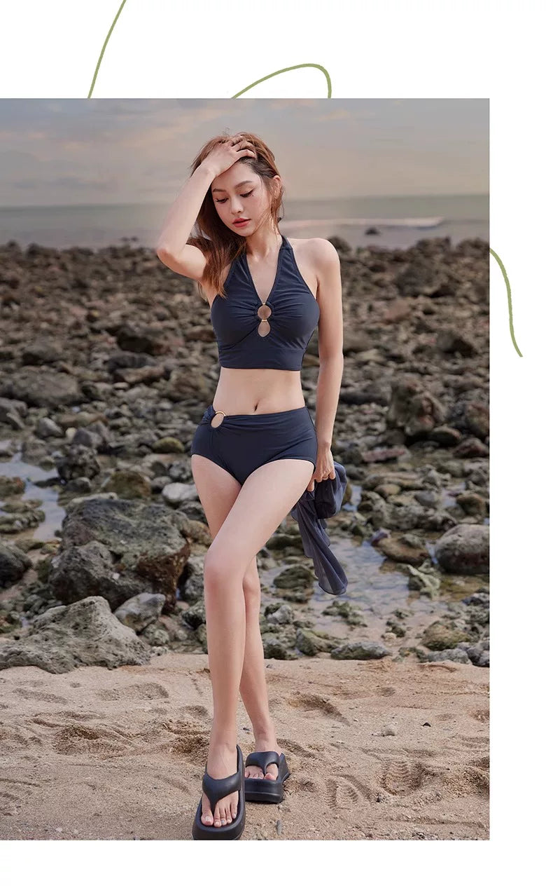DK Women's Swimsuit 2025 New Style Long Skirt High-End Sexy Three-Piece Set Hot Spring Resort Fashion High-Waisted Bikini