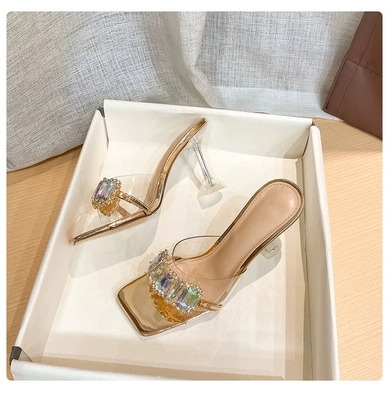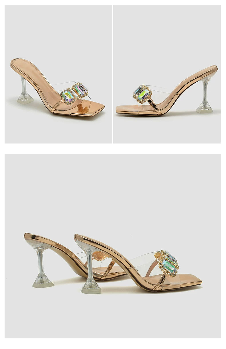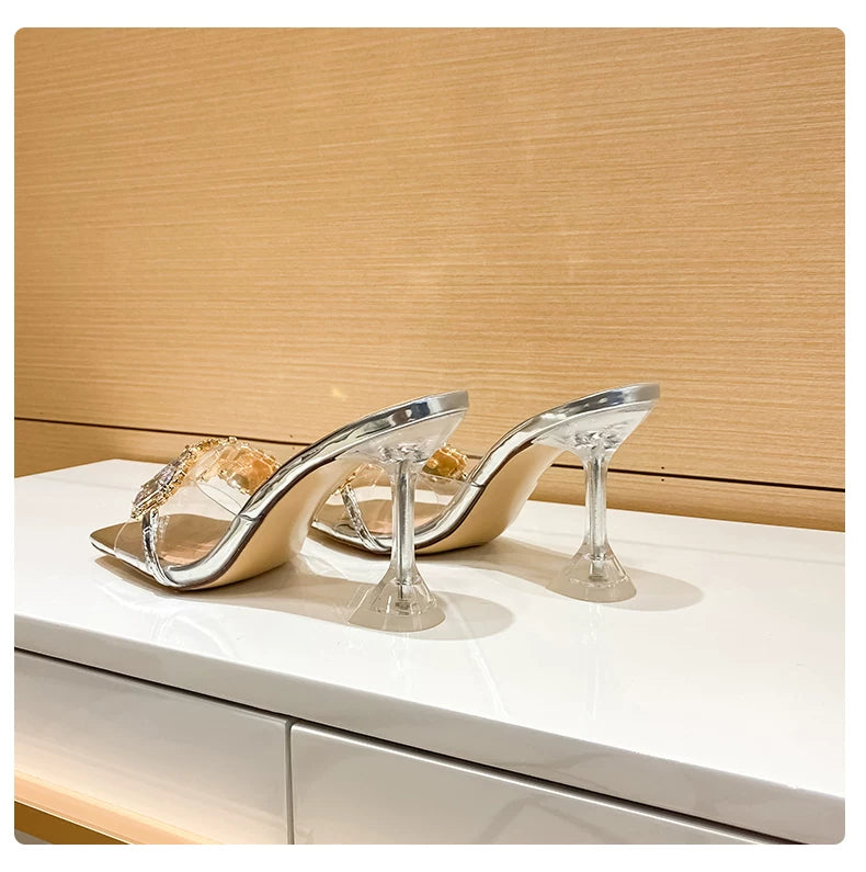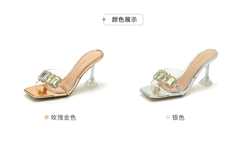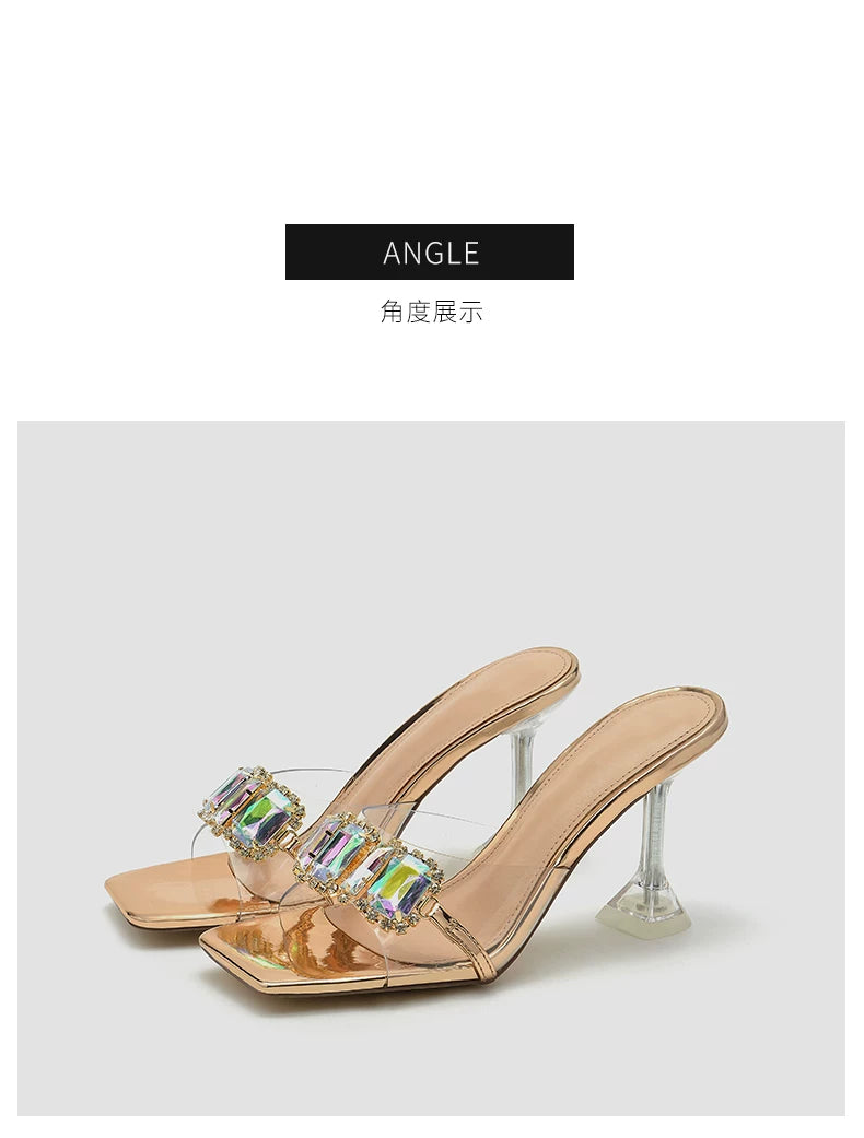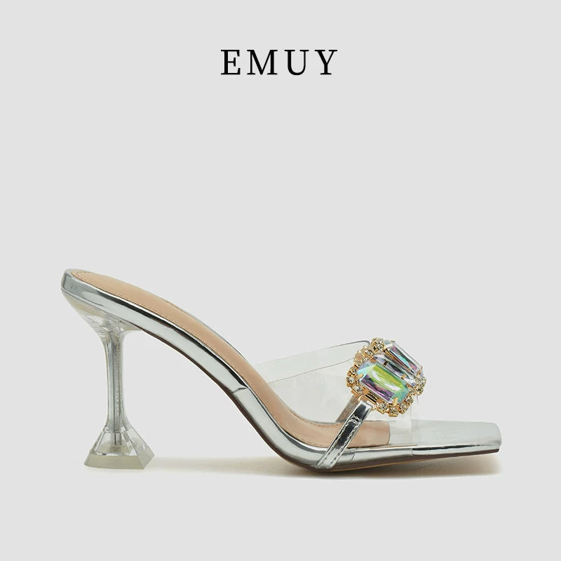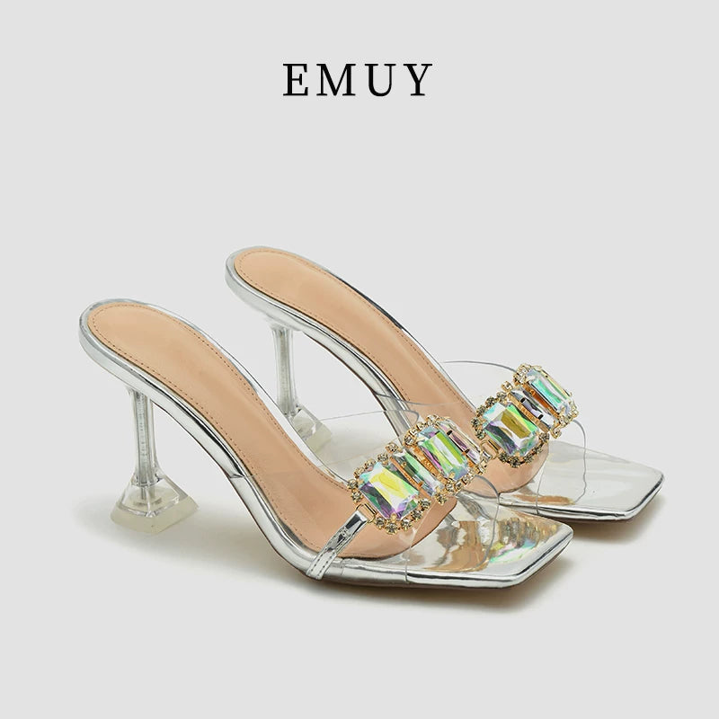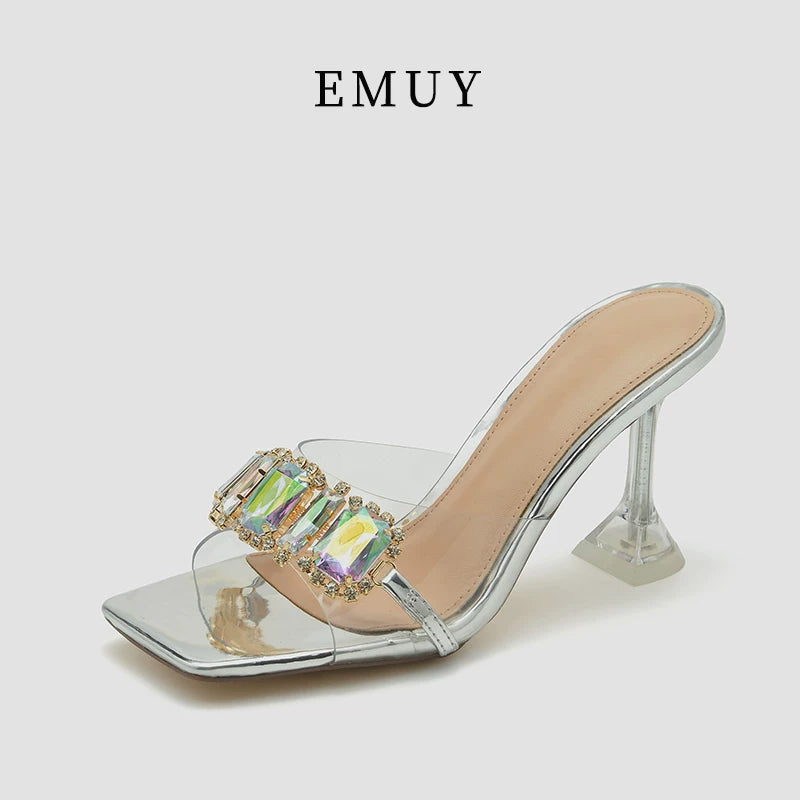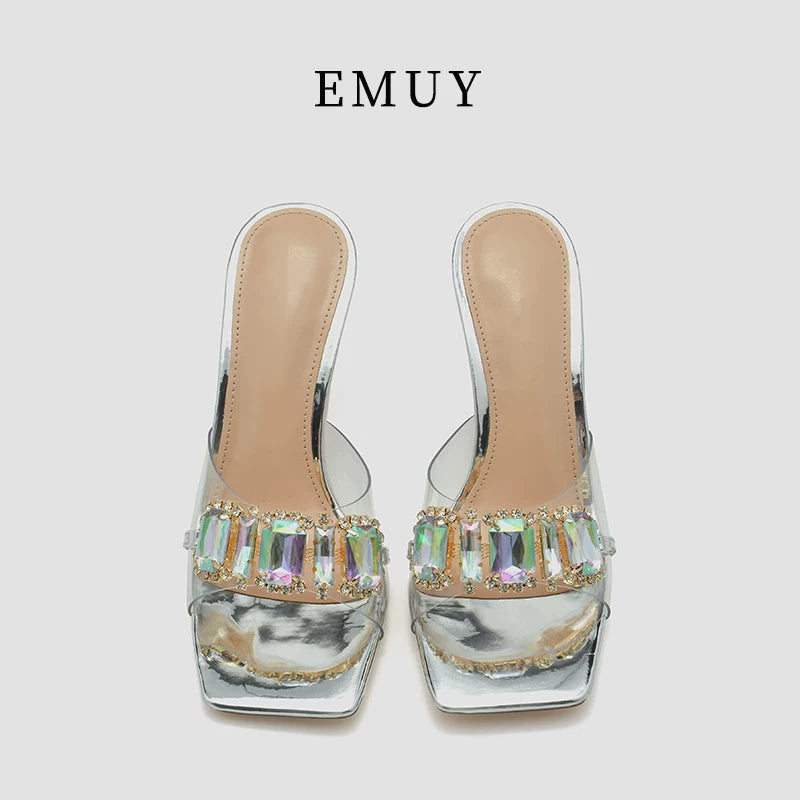 Emuy Rhinestone High Heels for Women, New Summer Style, Sexy and Elegant French Chic, Niche Style, Crystal Heel Stiletto Transparent Sandals