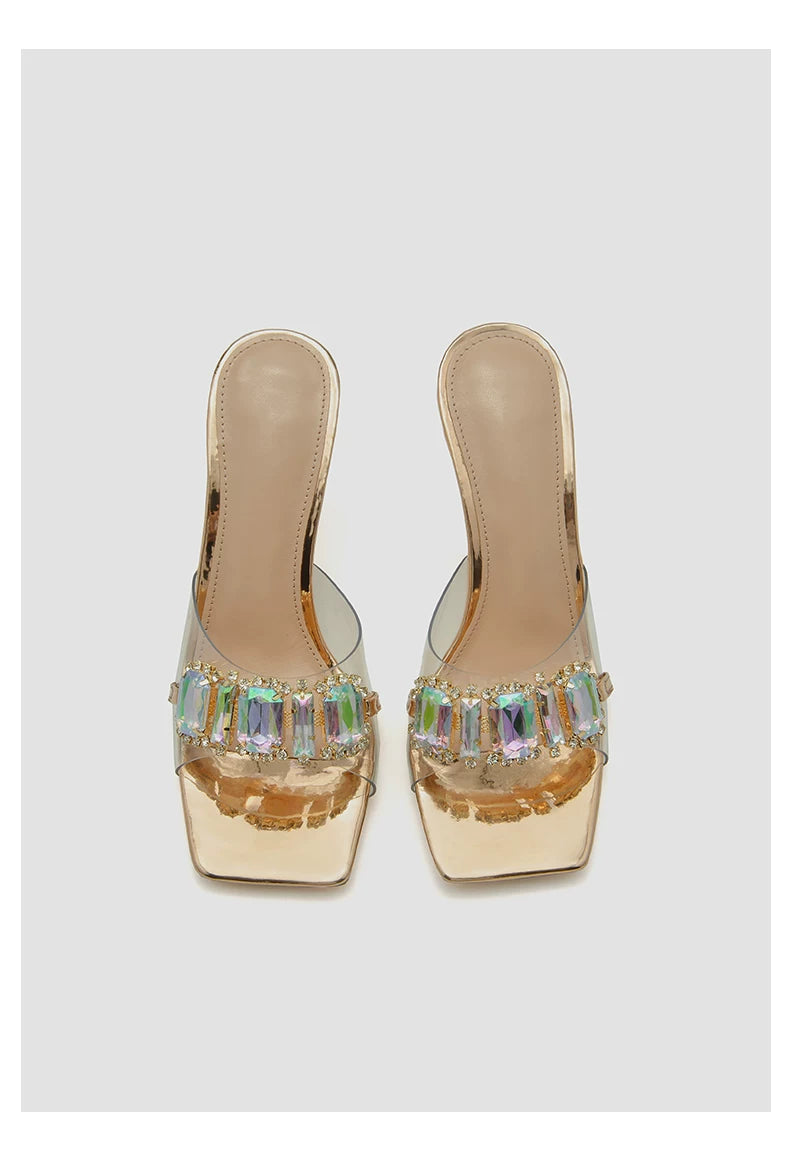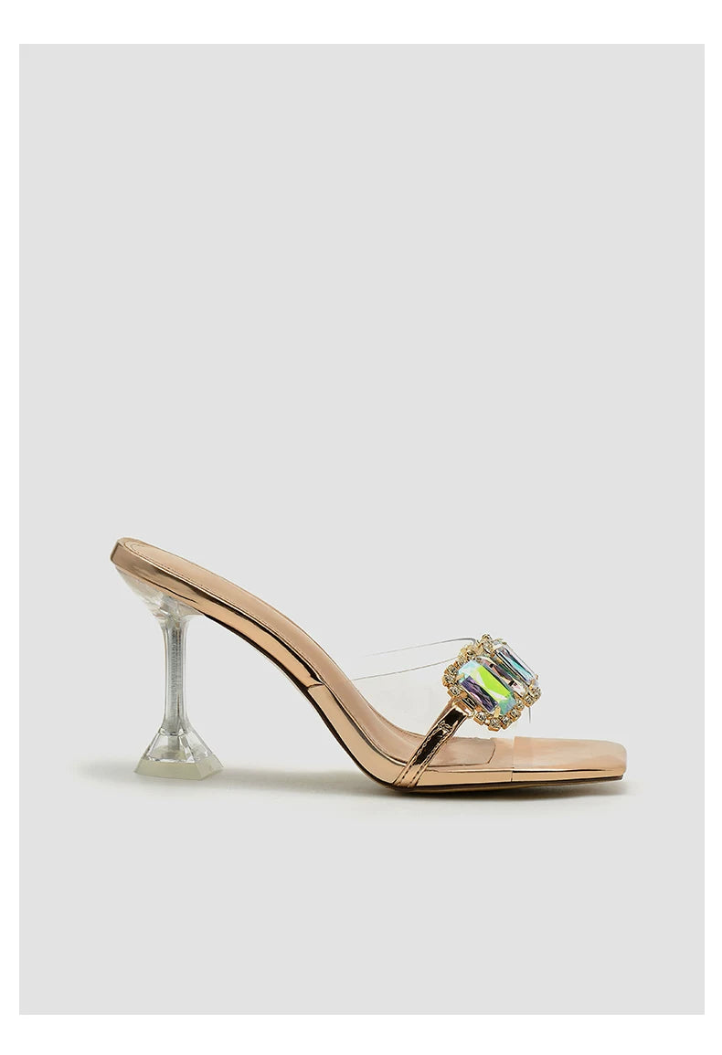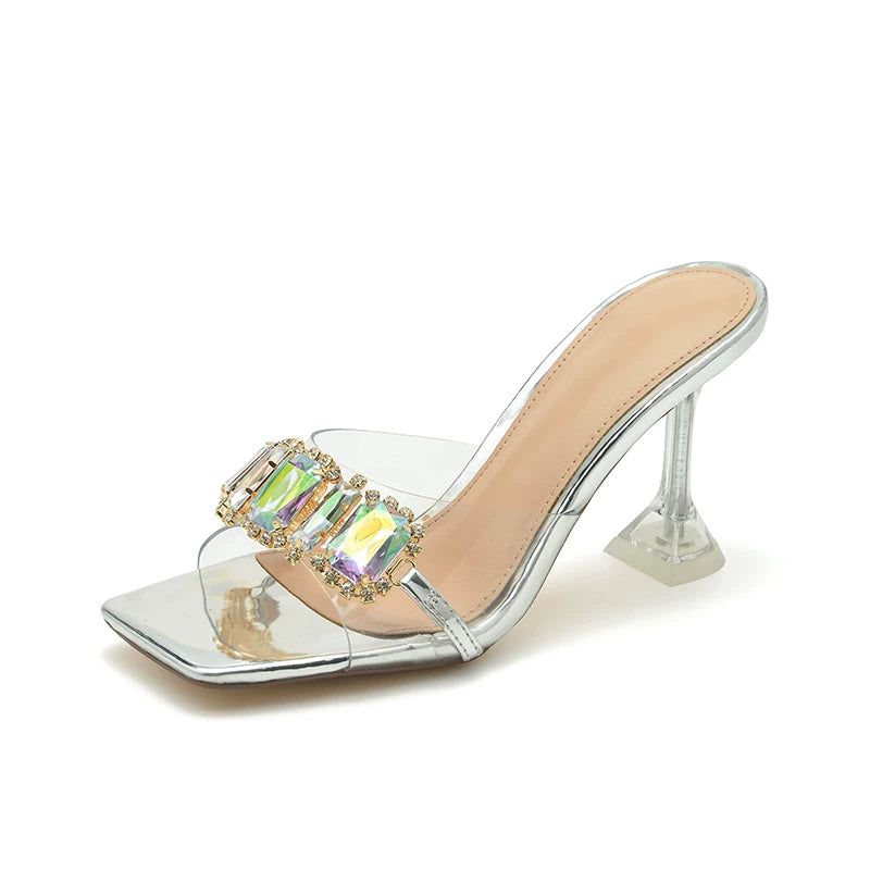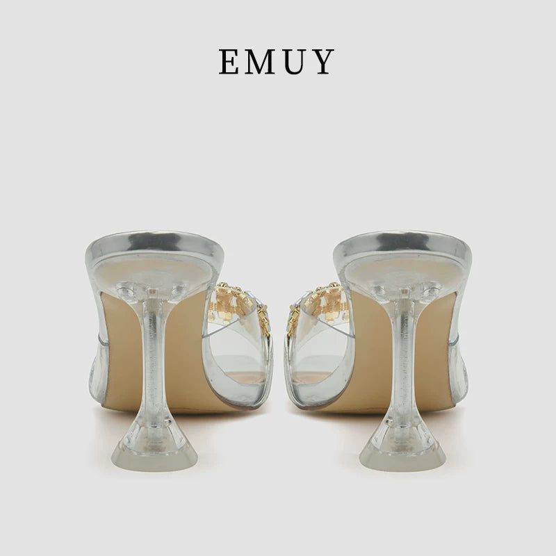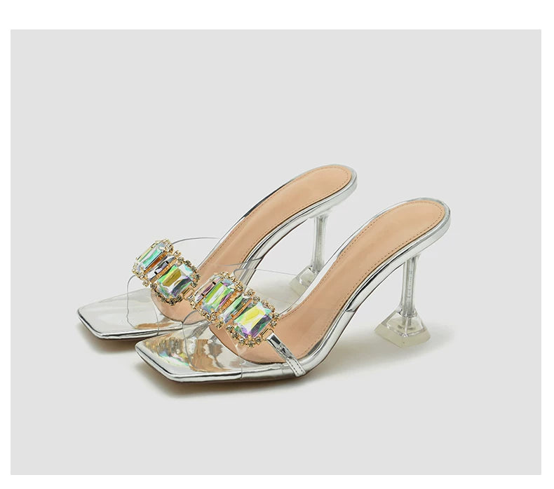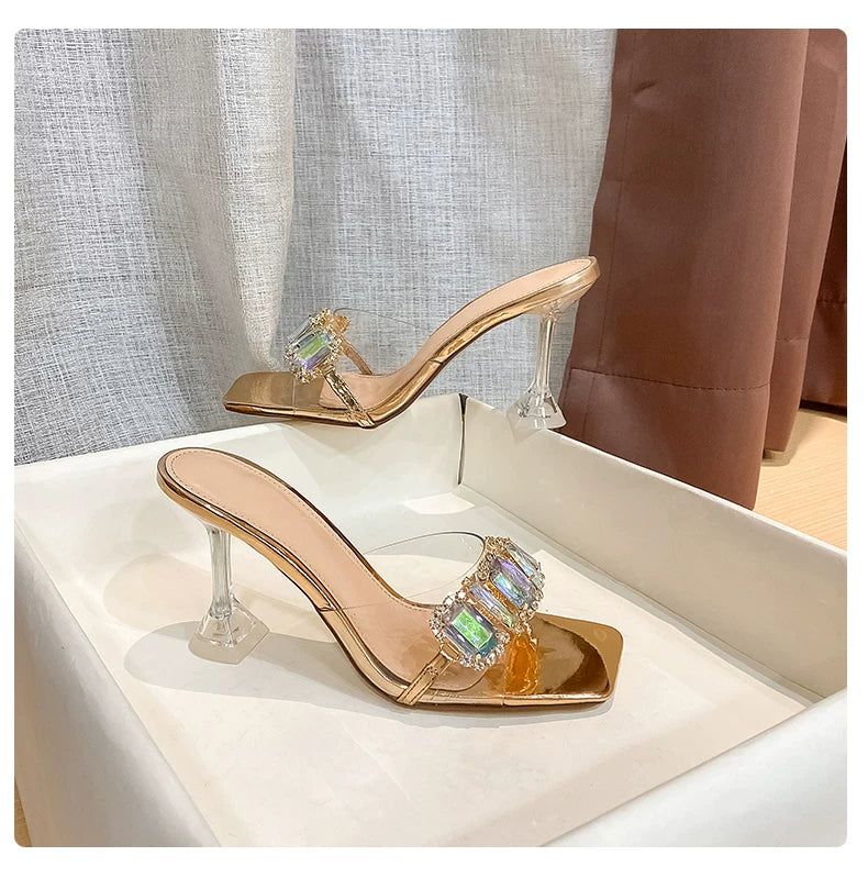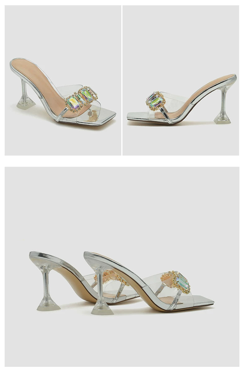 Emuy Rhinestone High Heels for Women, New Summer Style, Sexy and Elegant French Chic, Niche Style, Crystal Heel Stiletto Transparent Sandals