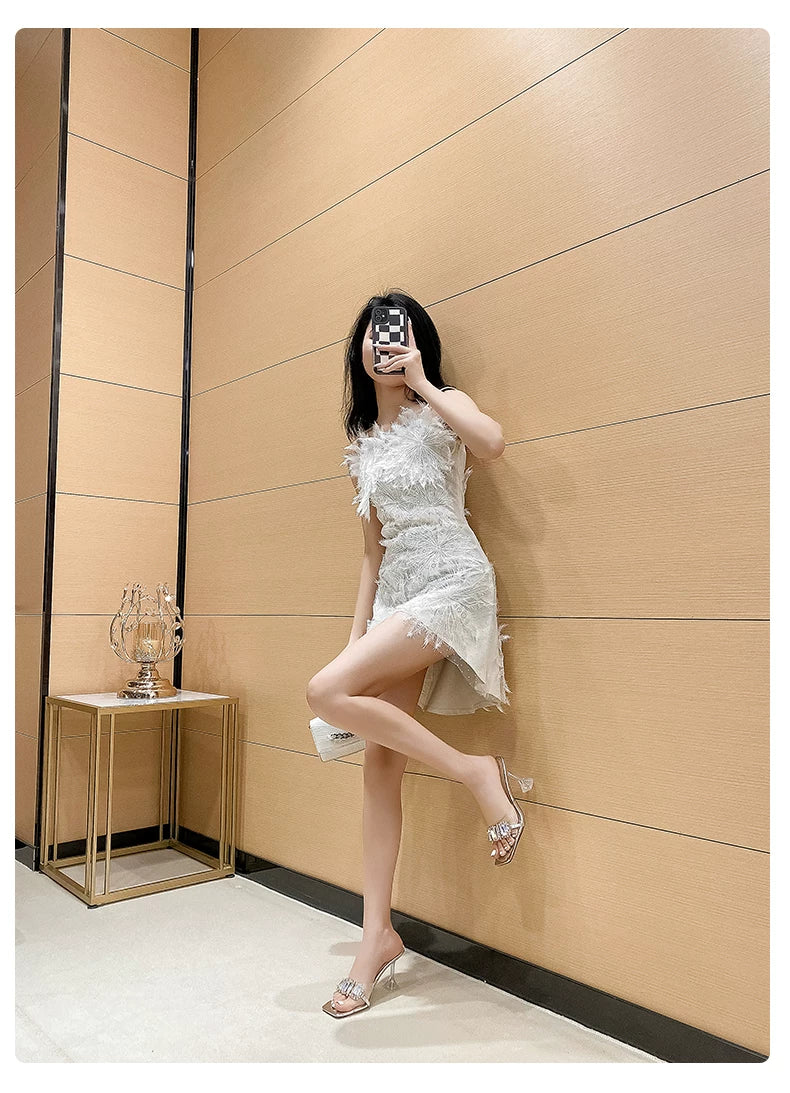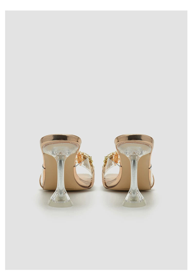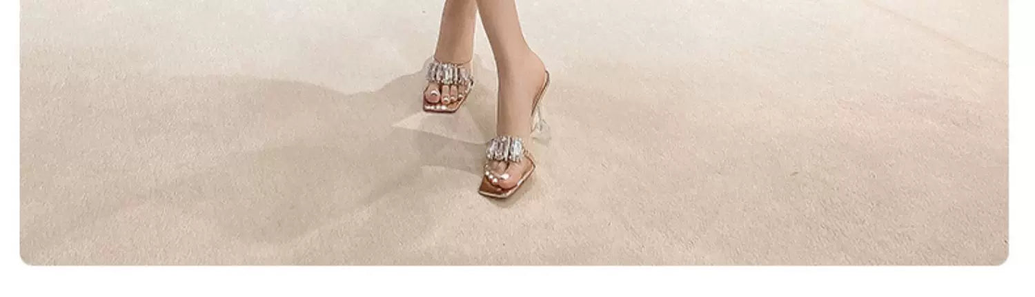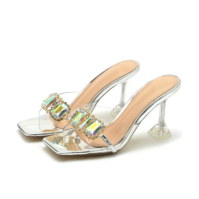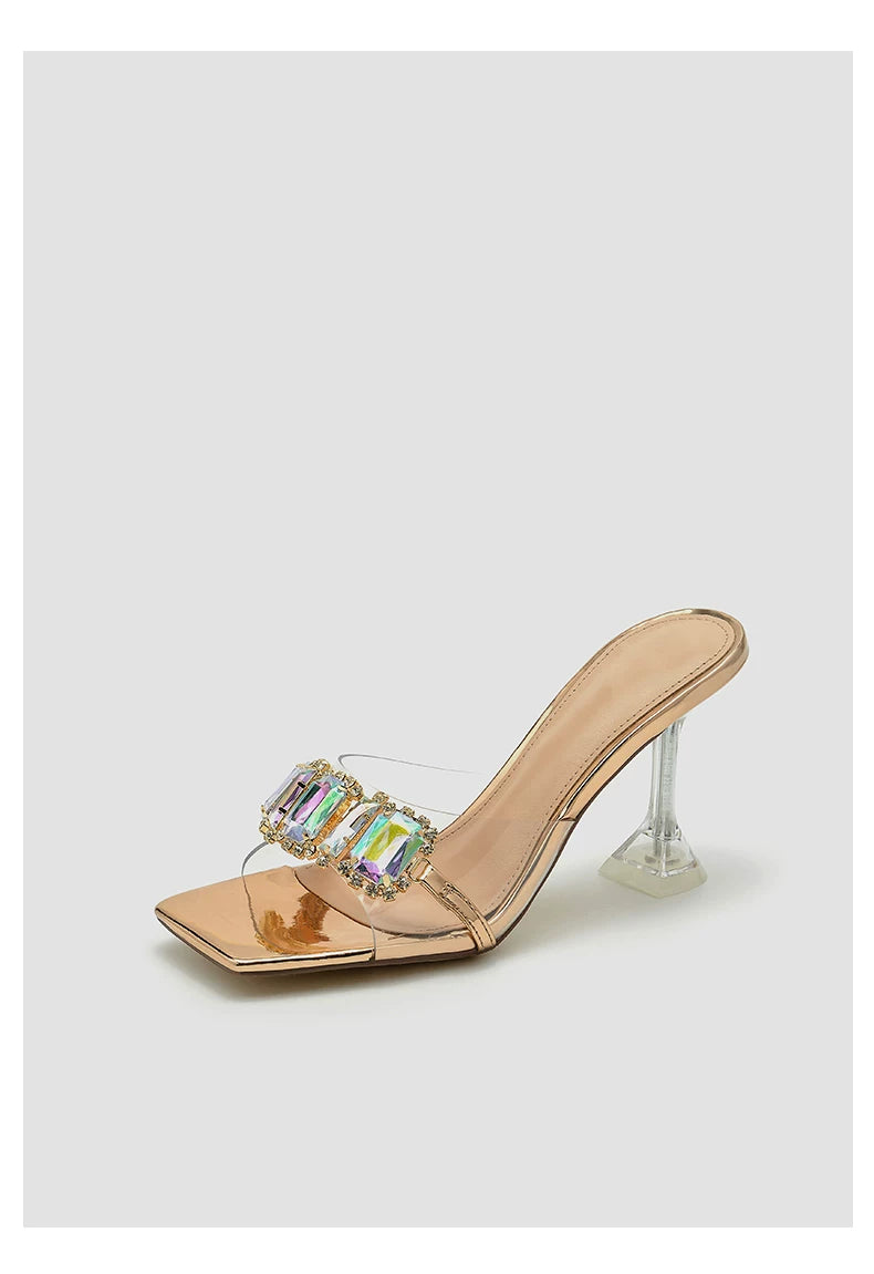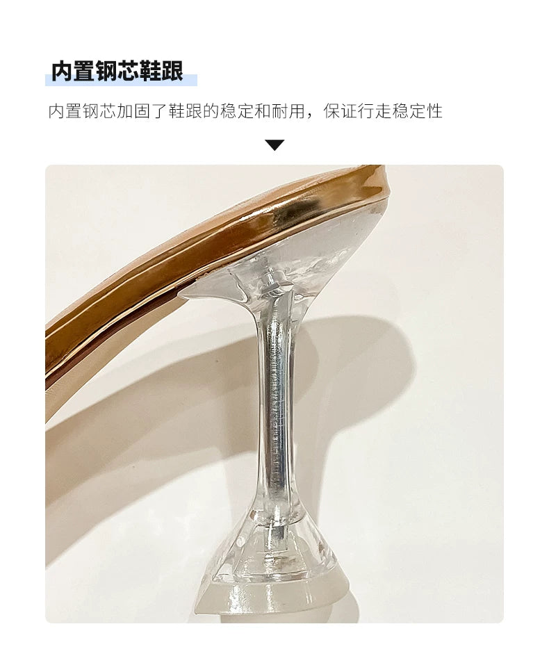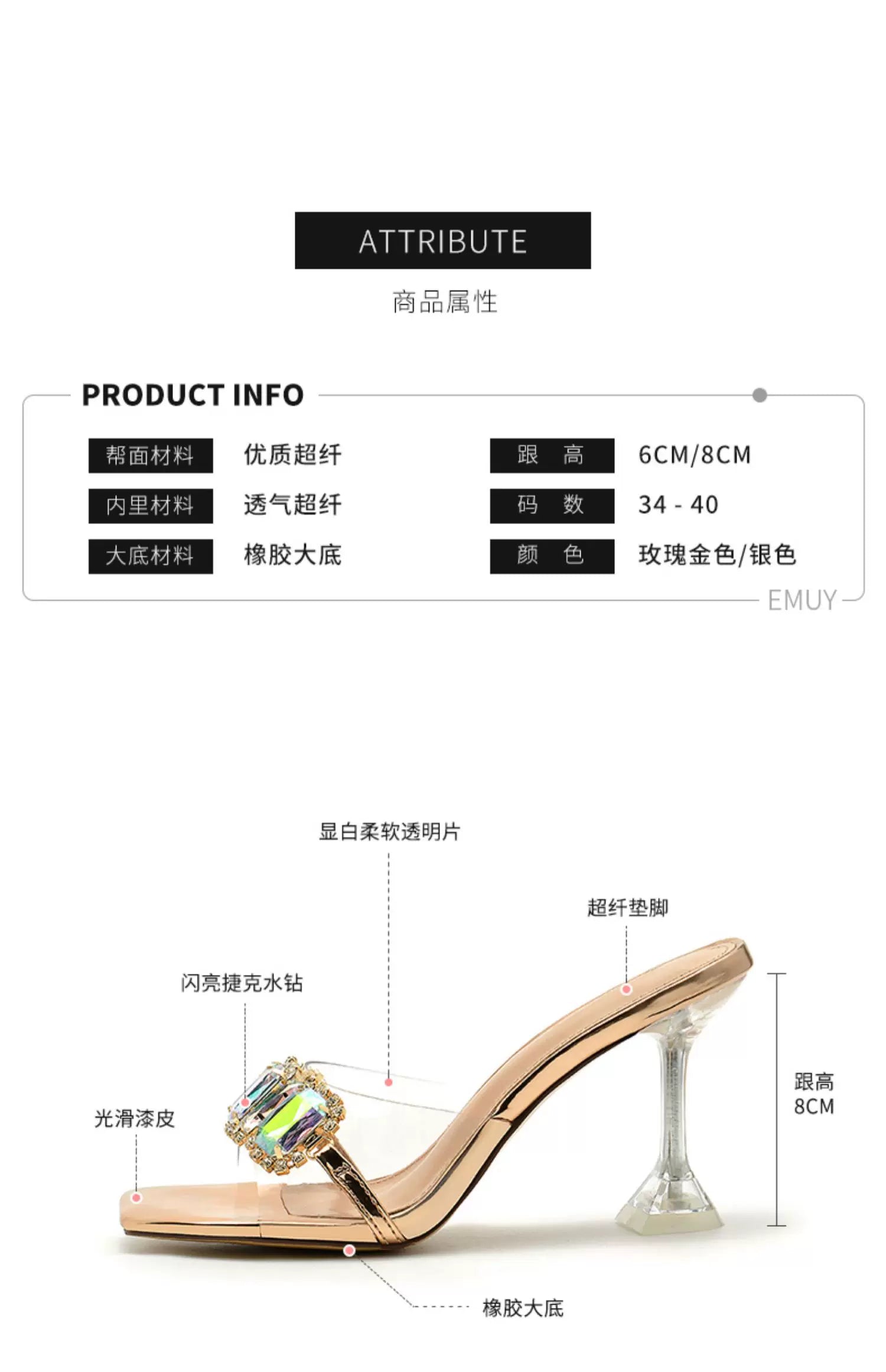 Emuy Rhinestone High Heels for Women, New Summer Style, Sexy and Elegant French Chic, Niche Style, Crystal Heel Stiletto Transparent Sandals