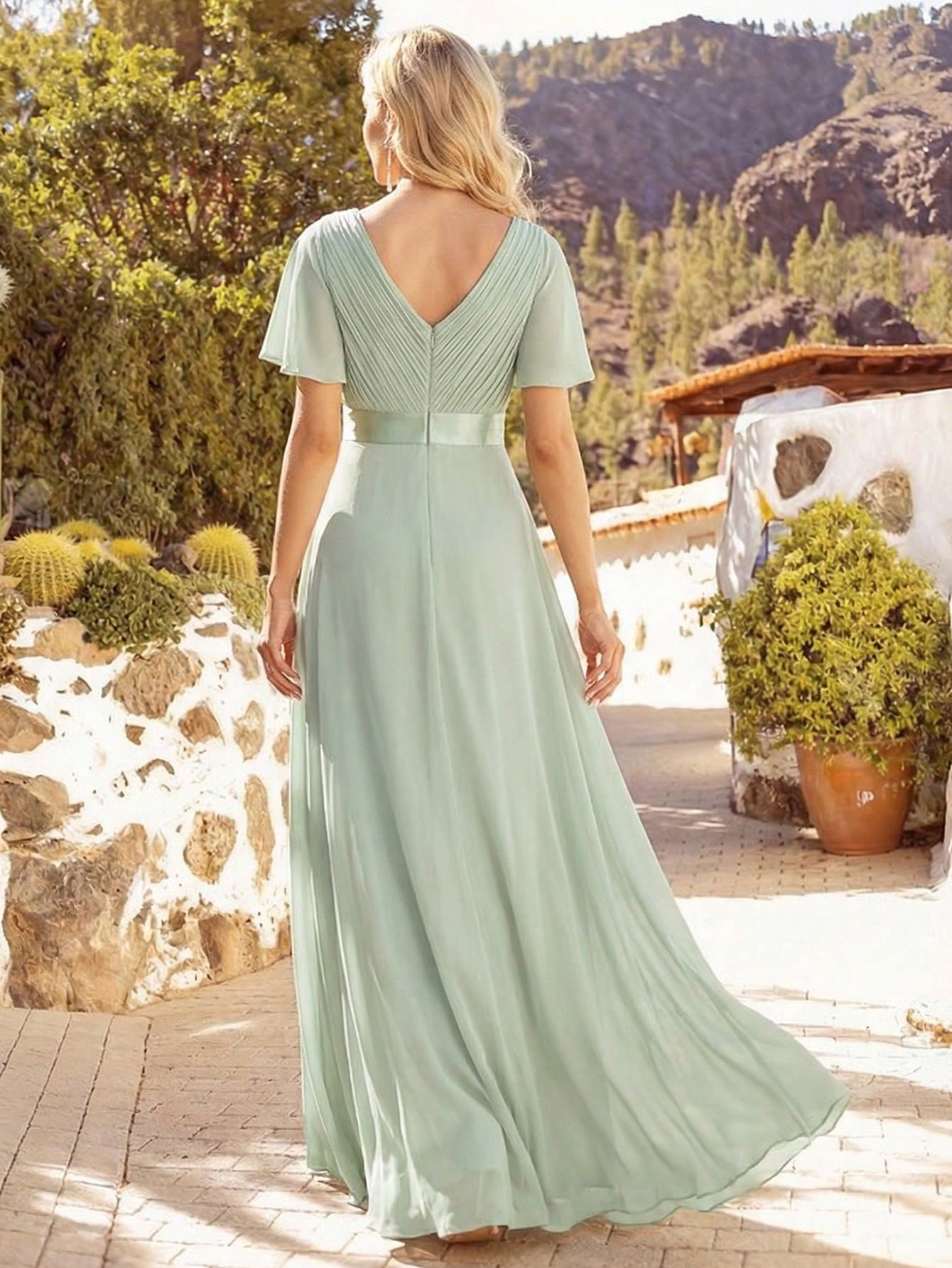 • EU/UK WarehousePlunge Neck Butterfly Sleeve Maxi Chiffon Bridesmaid Dress