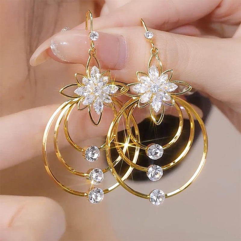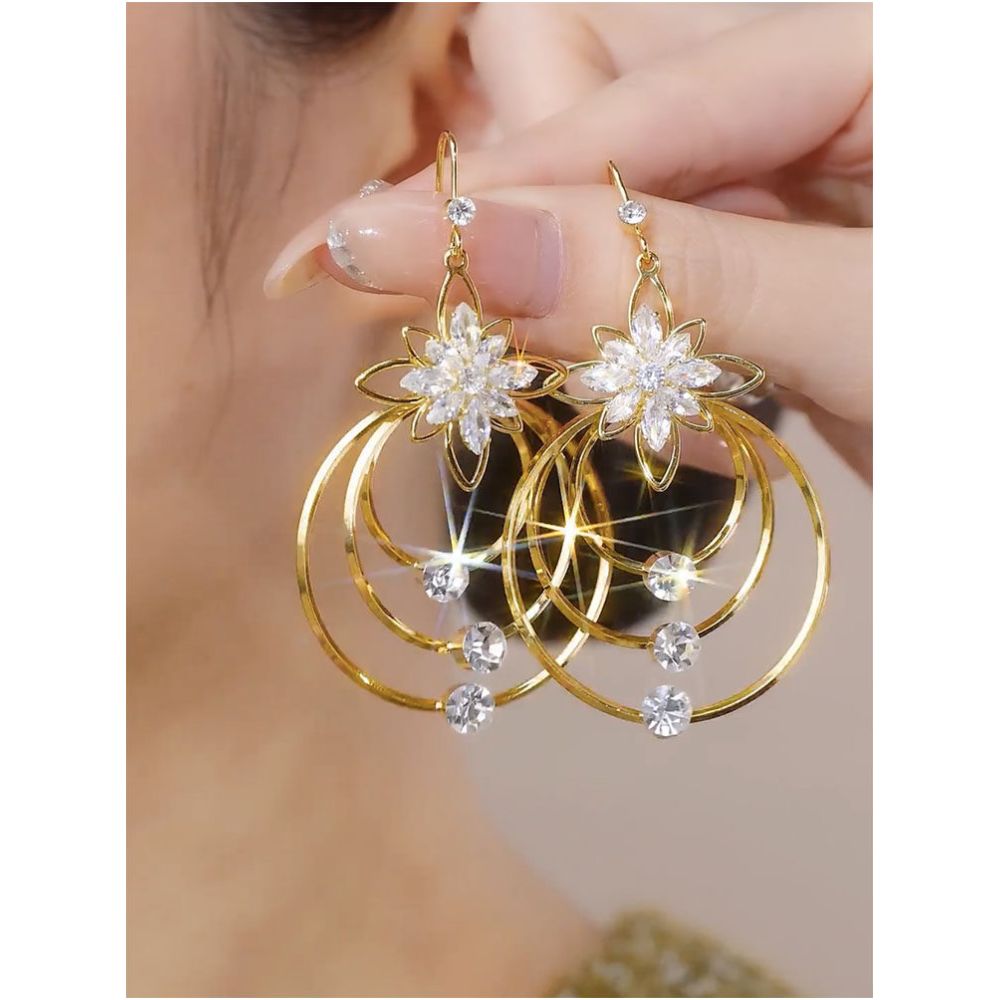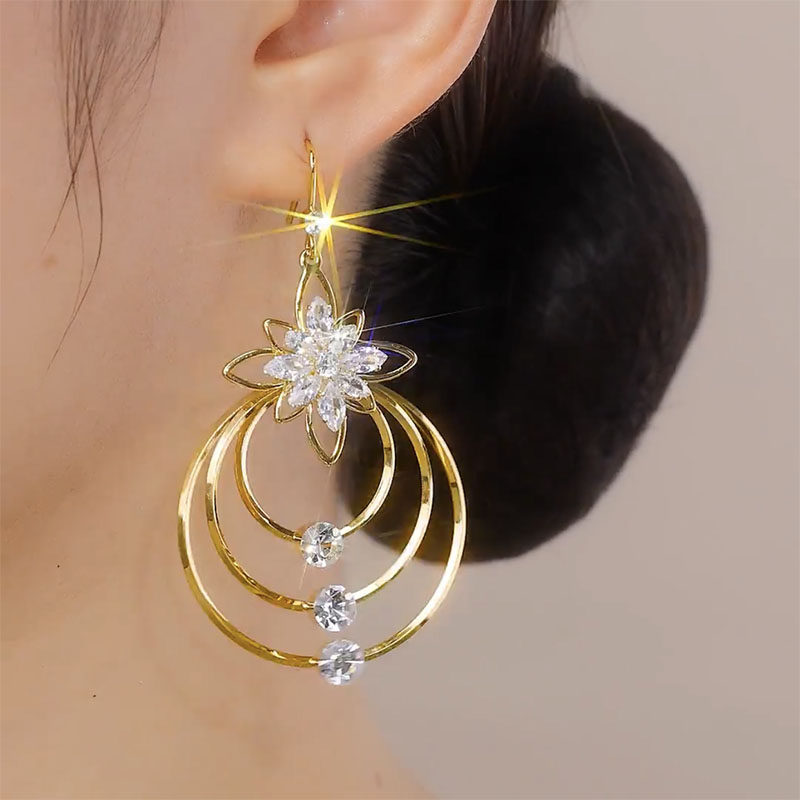 Exaggerated design sense multi layered large circle earrings women s fashion personality big brand light luxury high end feeling earrings European and American earrings