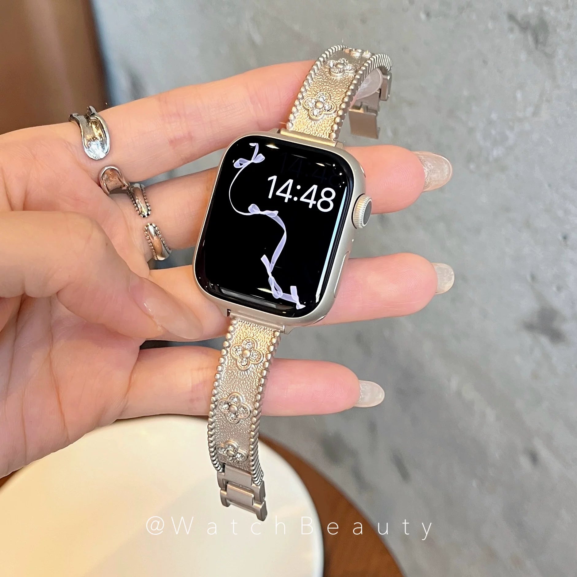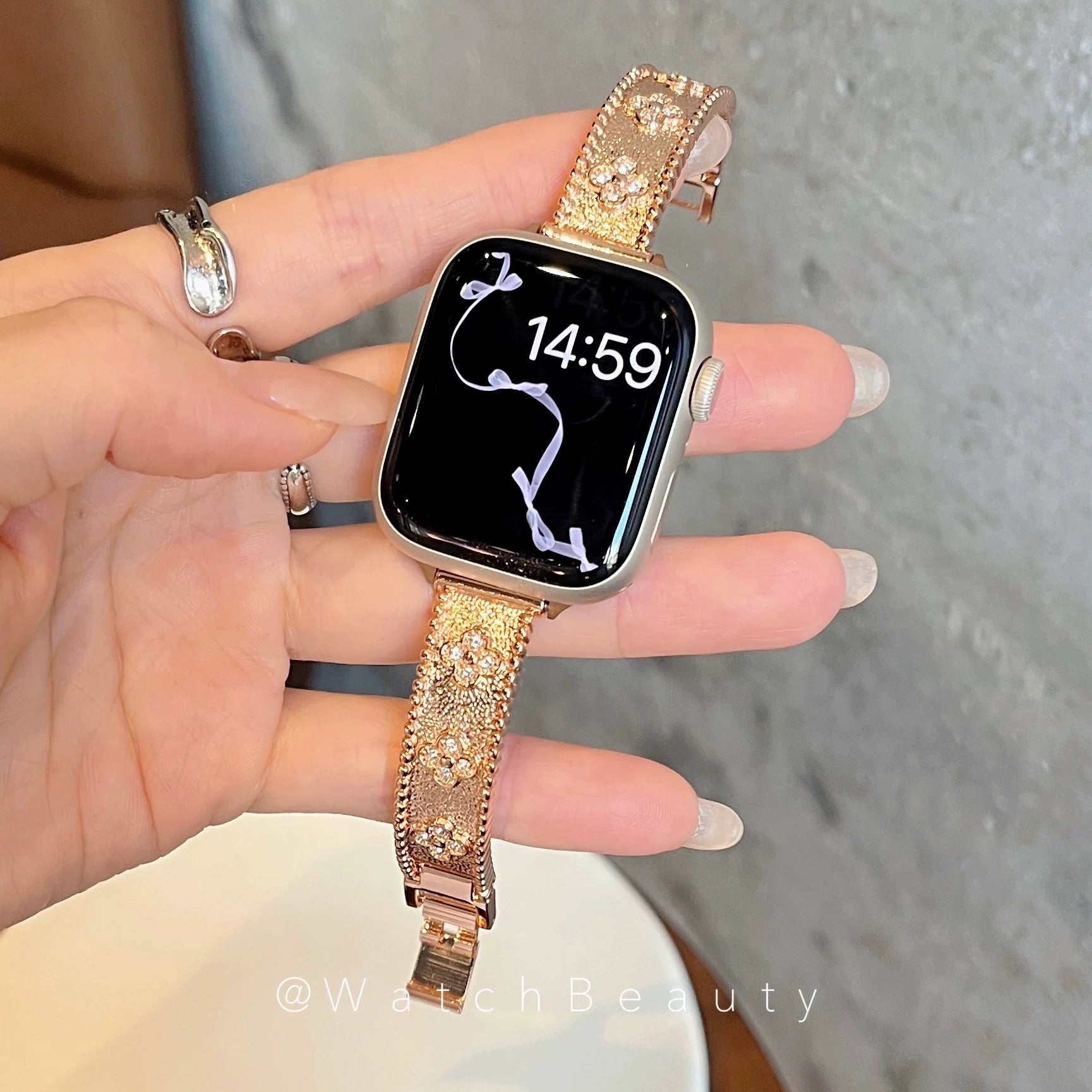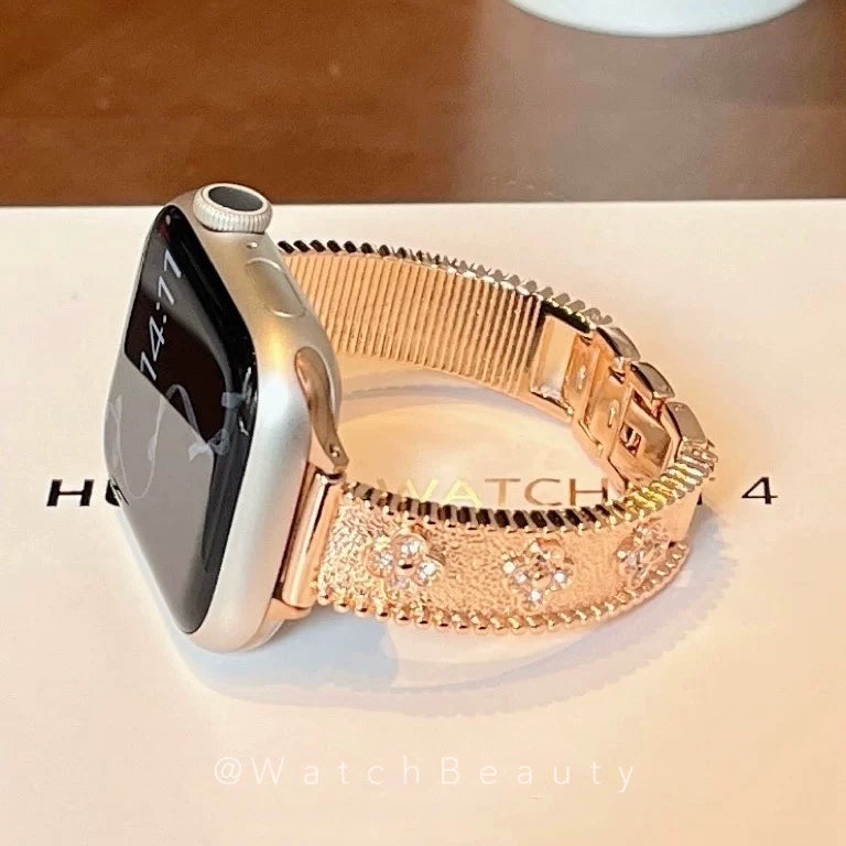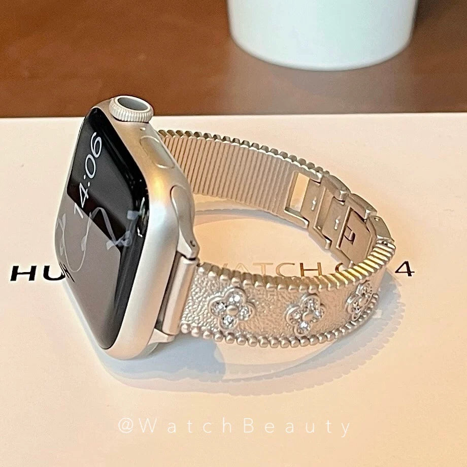 Four-leaf clover metal diamond-encrusted Apple Watch band, compatible with Apple Watch 10, iWatch 11, and S9.Four-leaf clover metal diamond-encrusted Apple Watch band, compatible with Apple Watch 10, iWatch 11, and S9.
