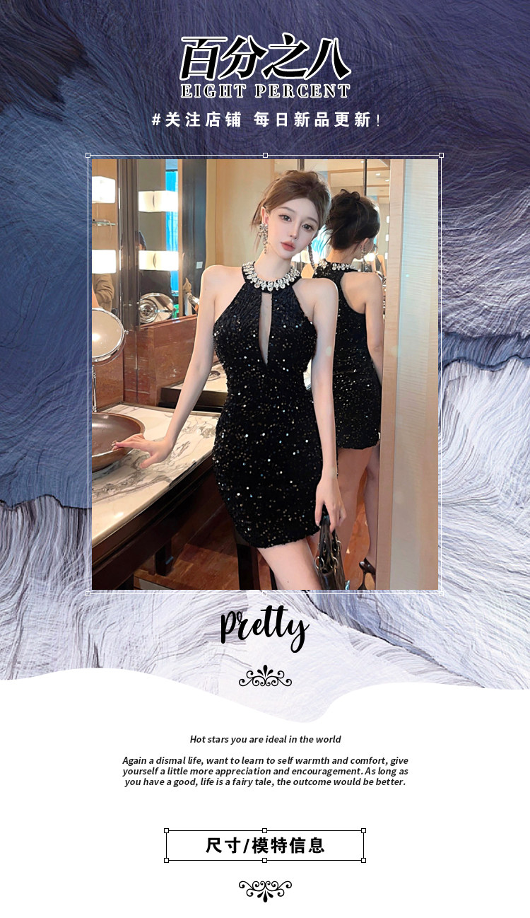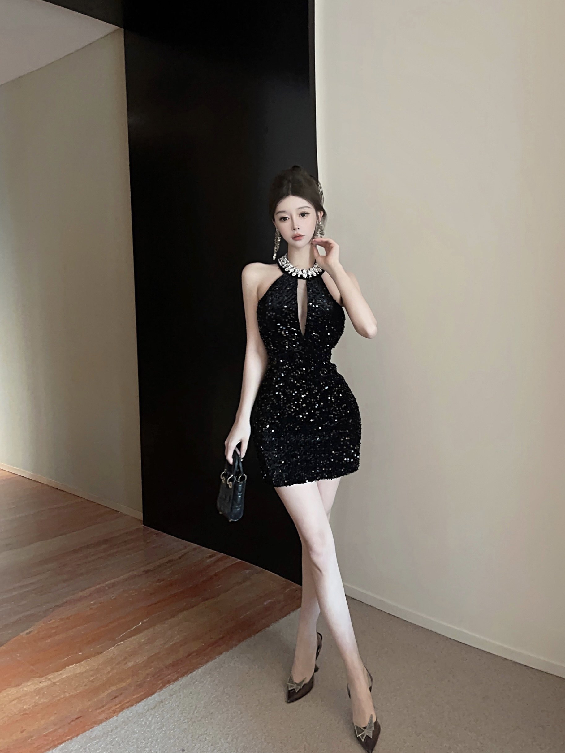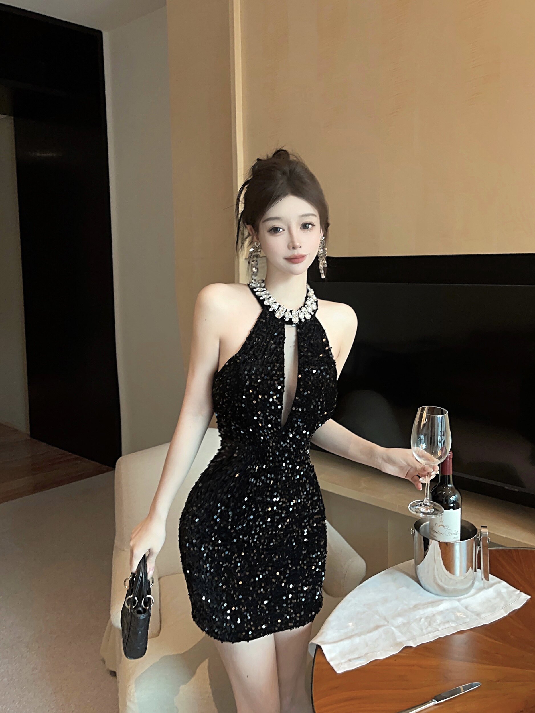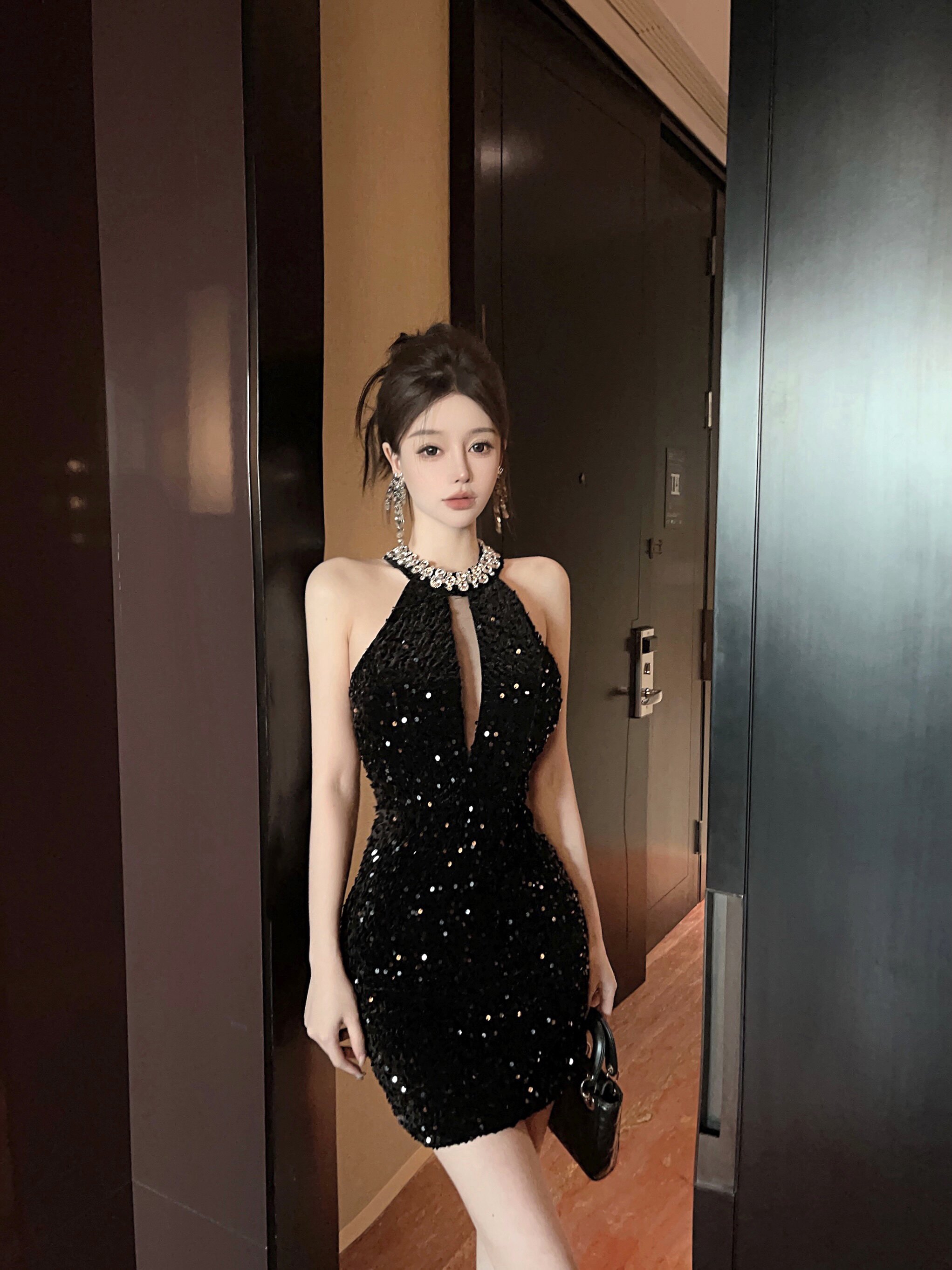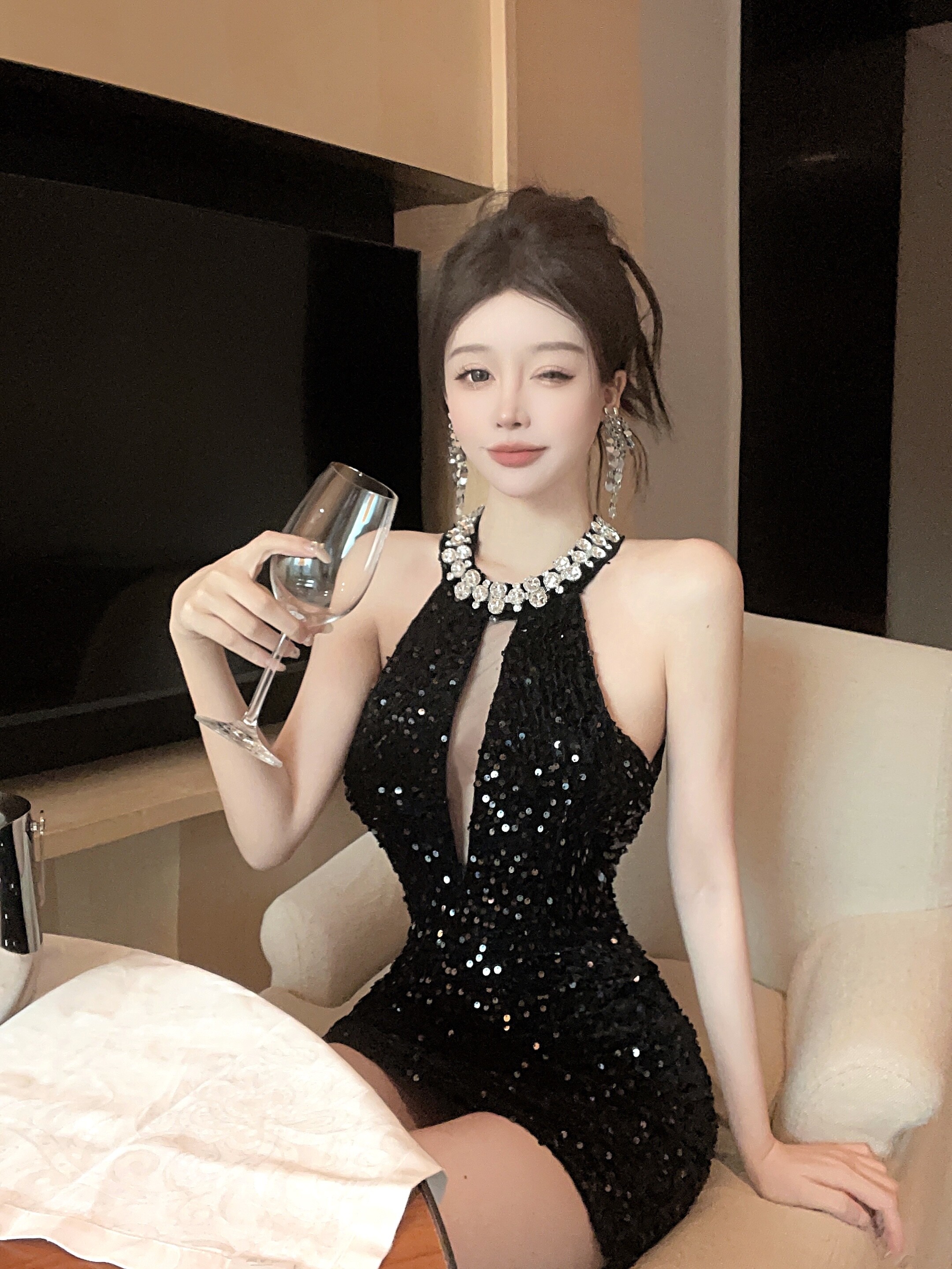 High end light luxury sexy socialite heavy industry sequin inlaid diamond dress with temperament high waist slim fit slimming and hip hugging dress