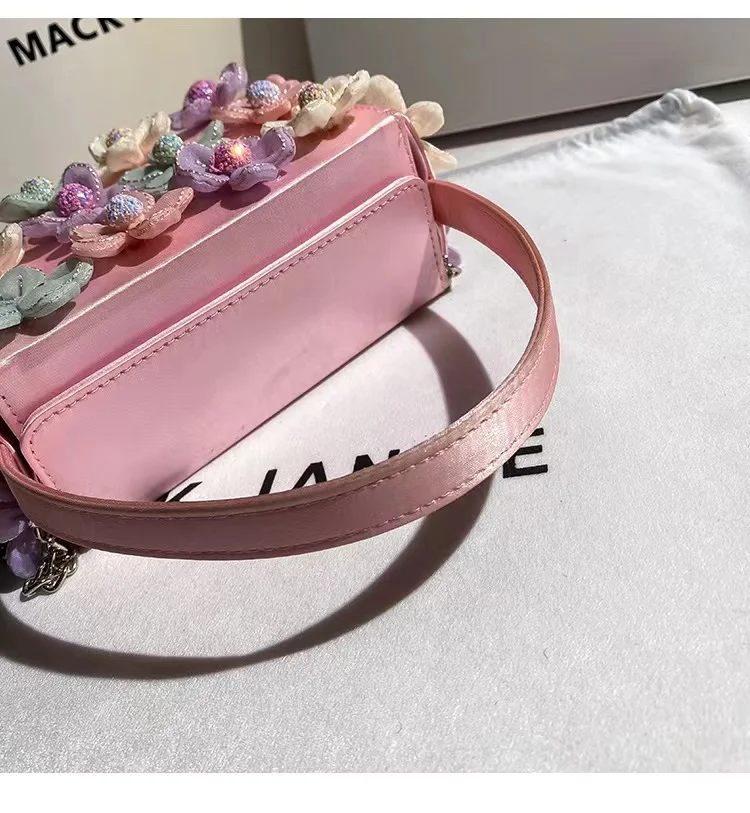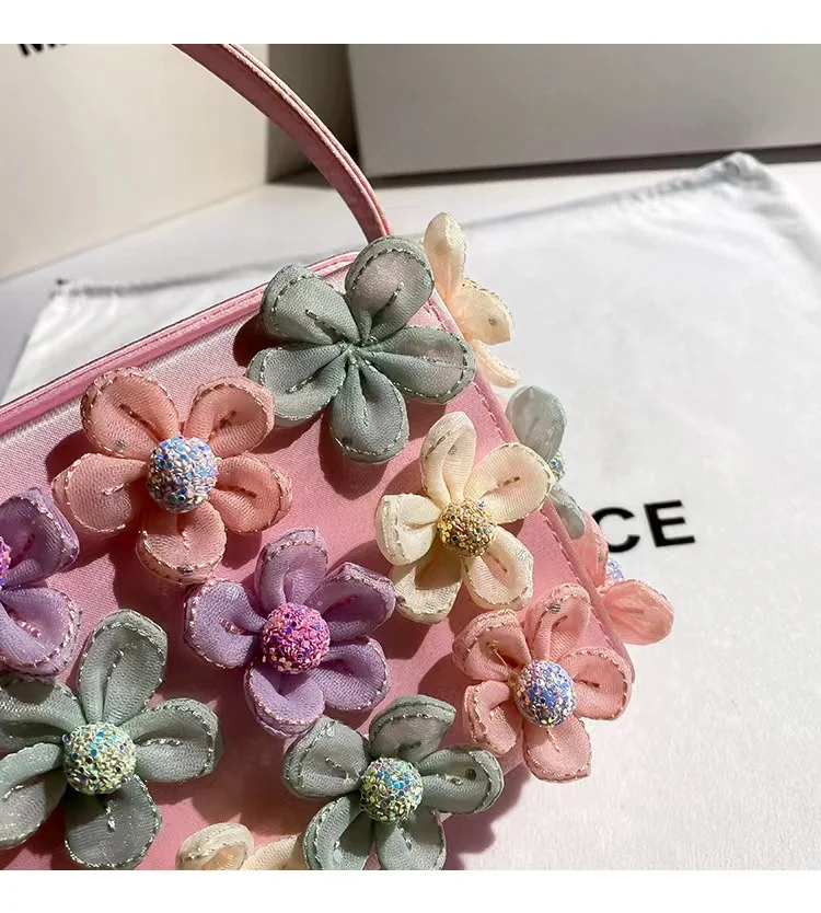 Luxury Satin Appliques Floral Square Bag Women's Handbag Fashion Evening Bag Wedding Party Clutch Purse Shoulder Crossbody Bag