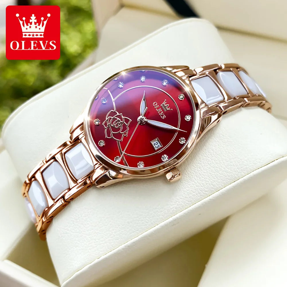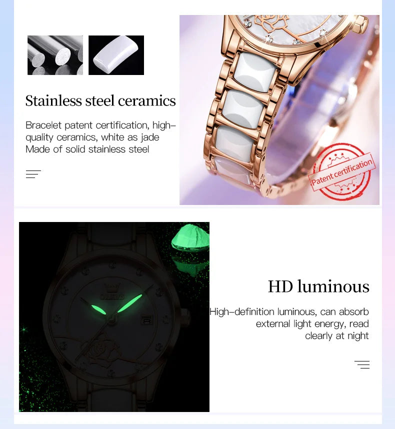 OLEVS 3606 Luxury Women Watch Camellia Quartz Japan Movement 30M Waterproof Watch For Women Ceramics Women Mechanical Watch