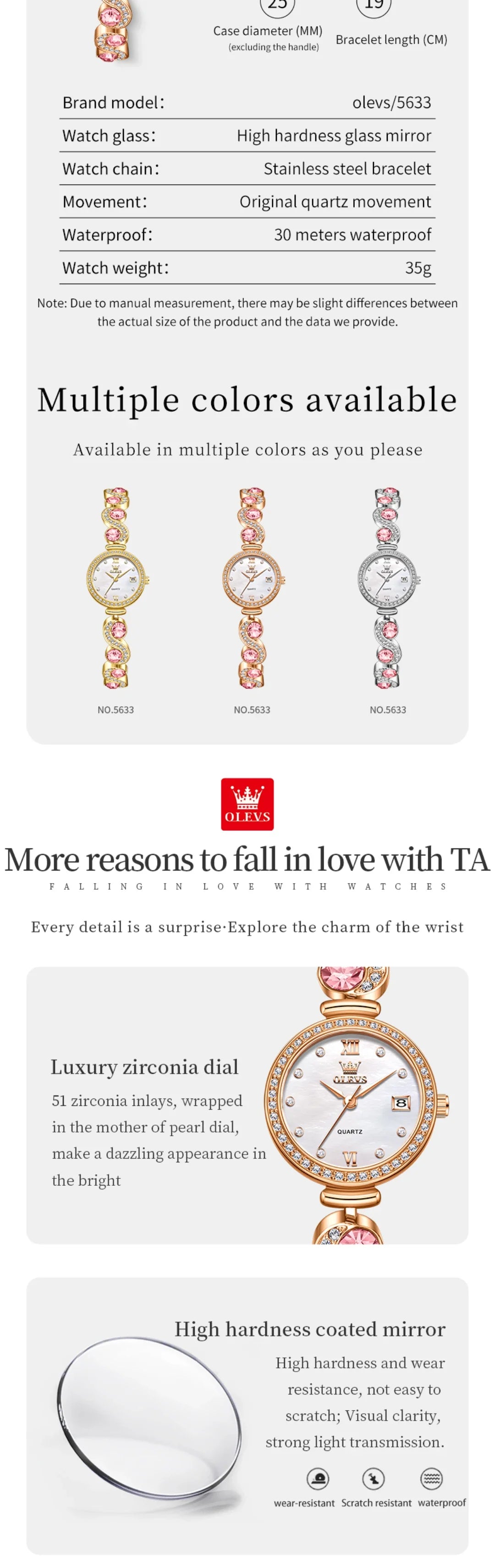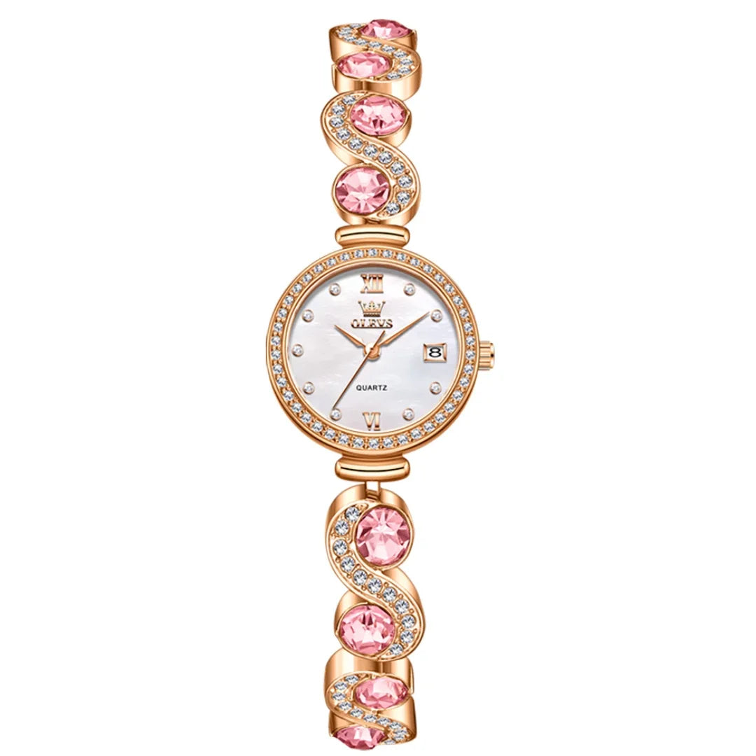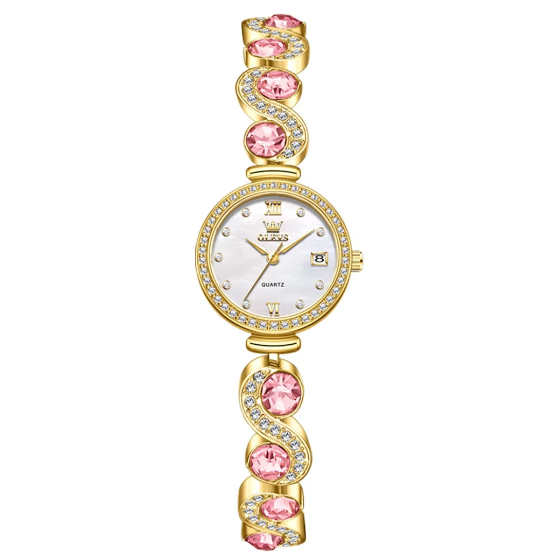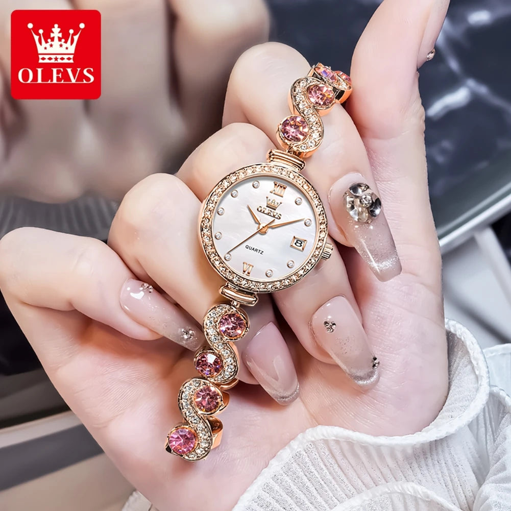 OLEVS 5633 Round-Dial Fashion Quartz Watch Stainless Steel Watchband Wristwatch with Calendar - Elegant Gift for Him Or Her