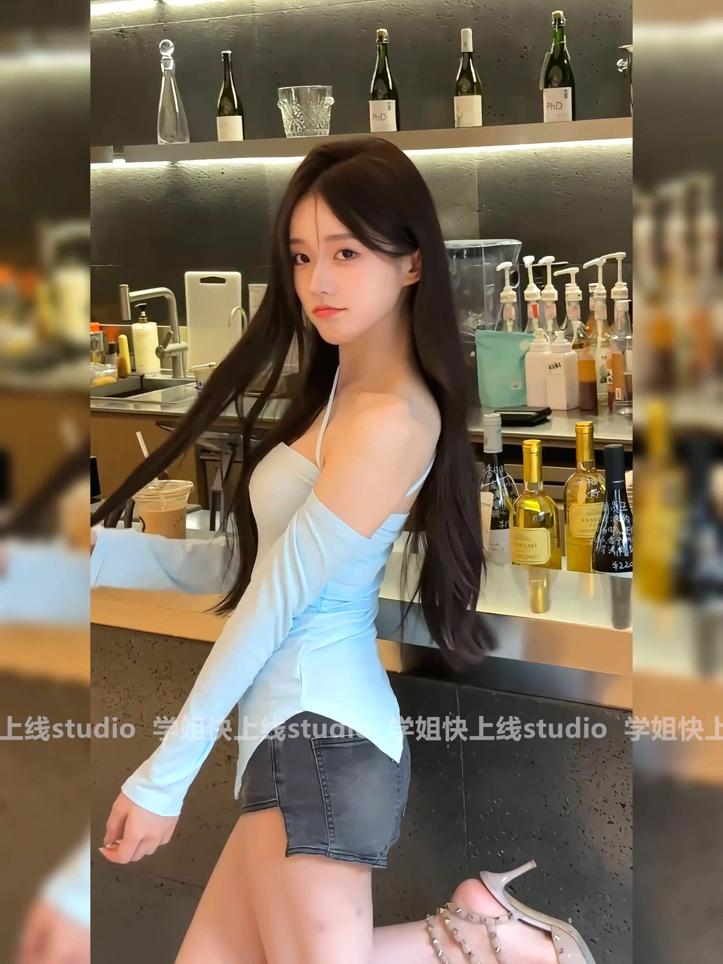 Pure desire spicy girl hanging neck off the shoulder with interior design niche top sexy one shoulder long sleeved suspender T shirt for women