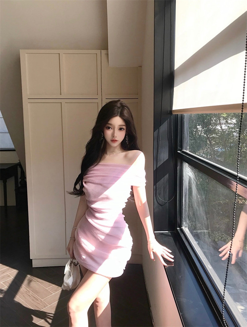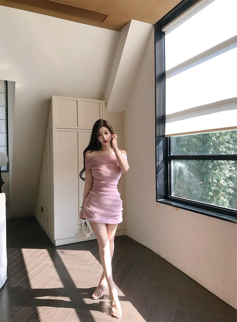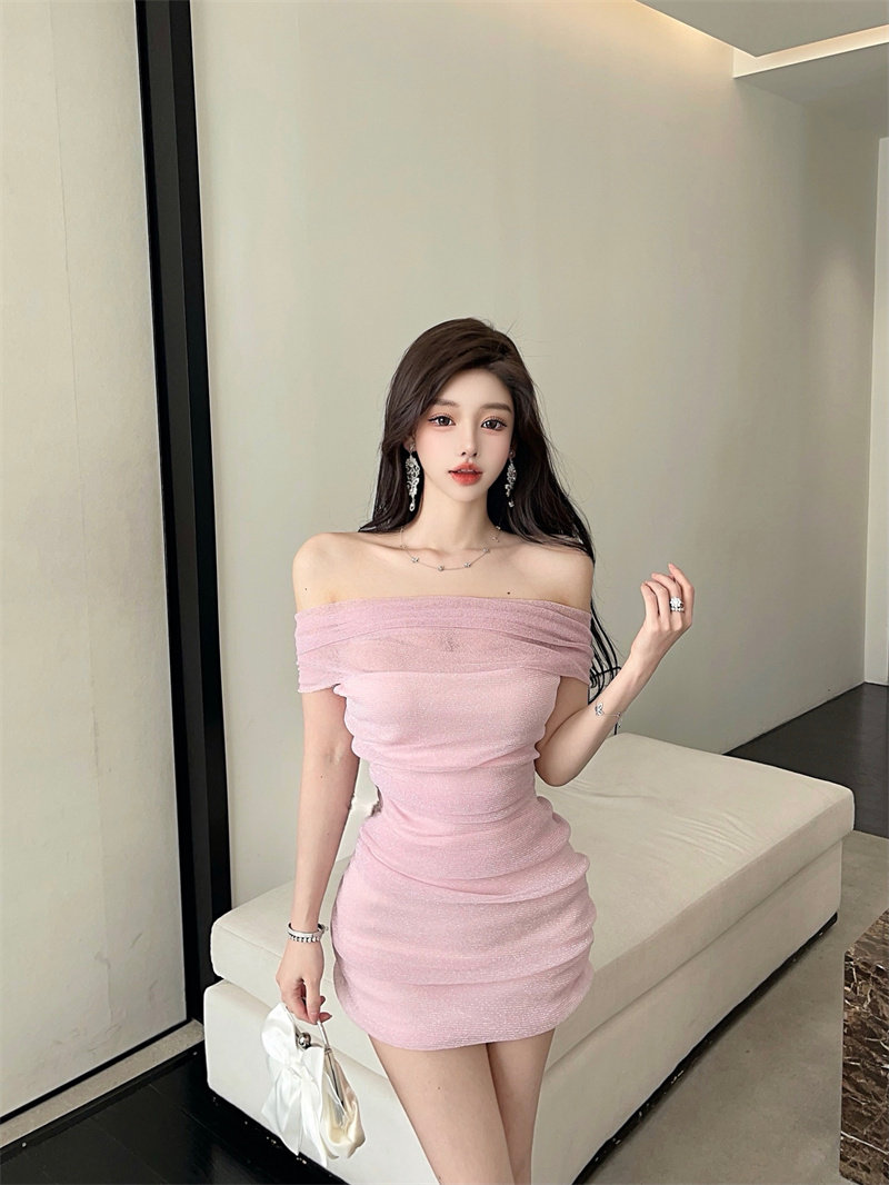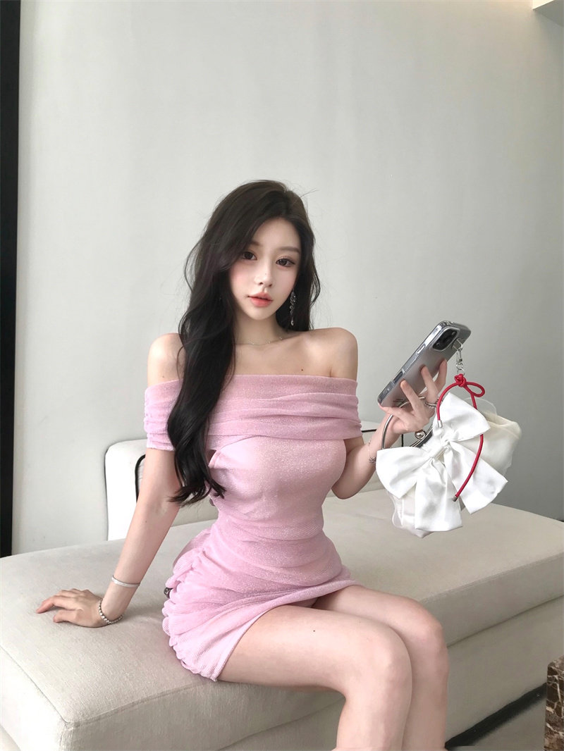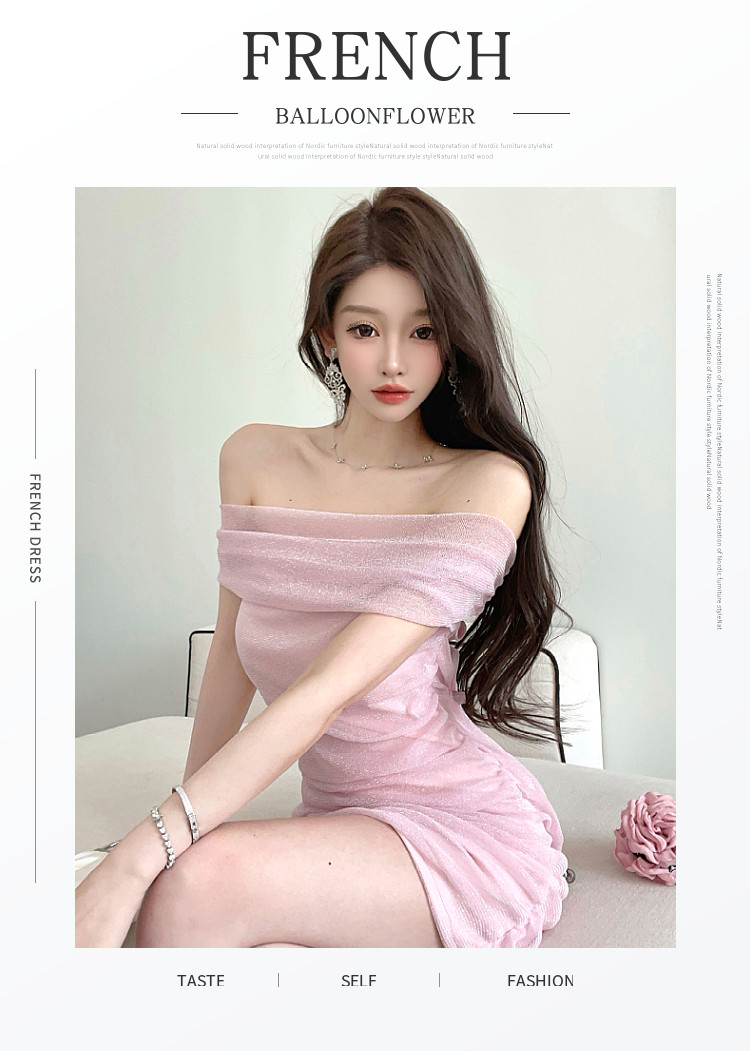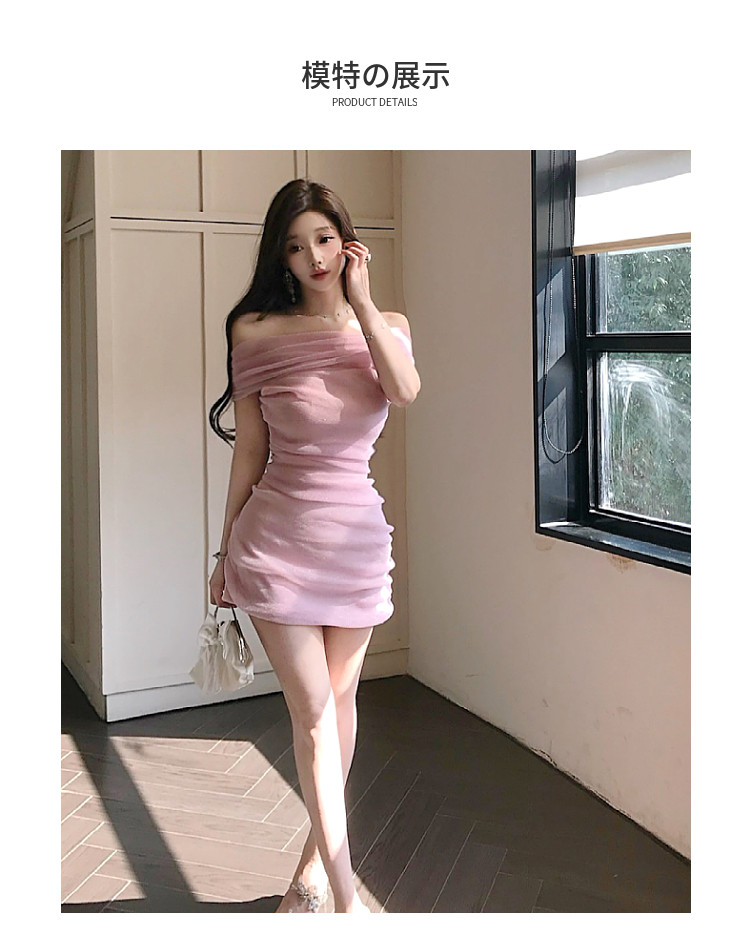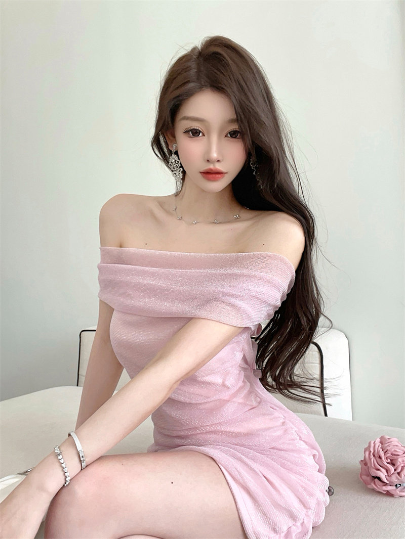 Pure desire style sexy pink strapless dress for women with a sense of luxury small stature temperament waist cinching and slimming hip hugging short skirt