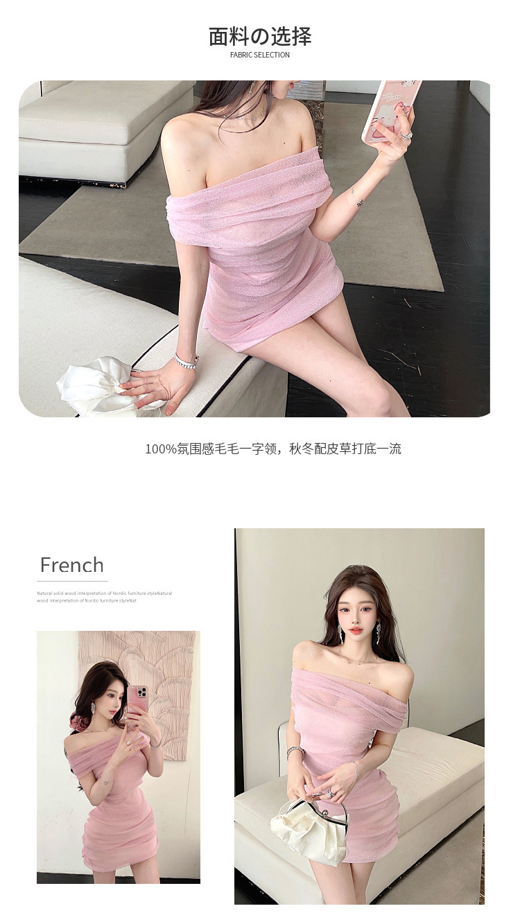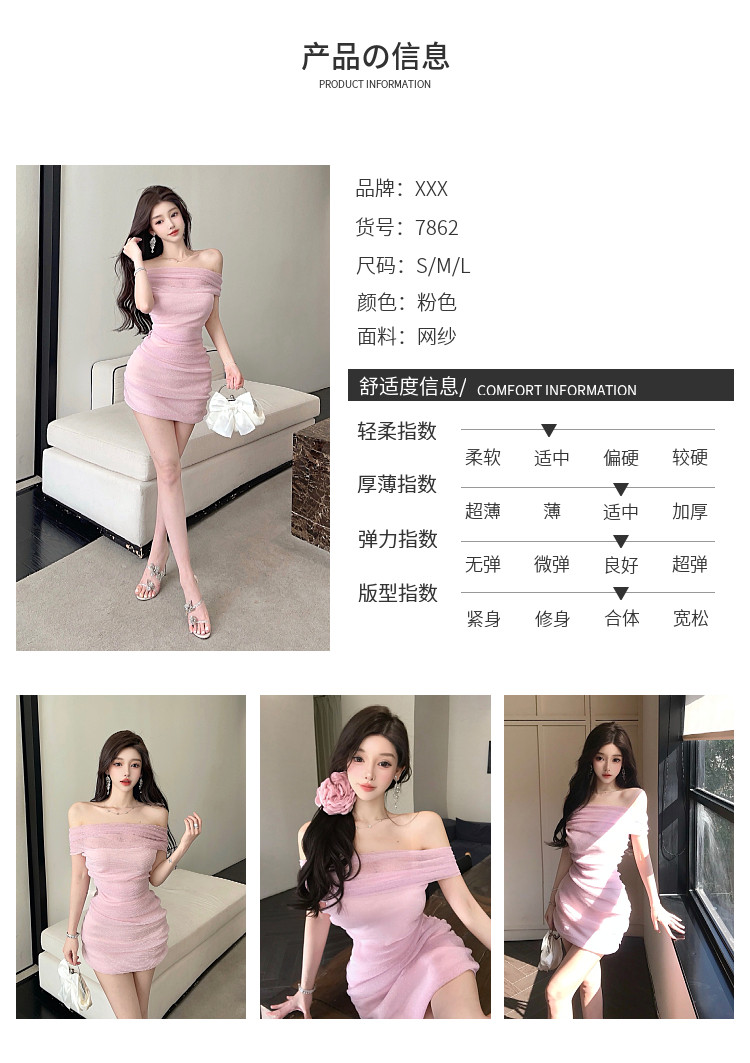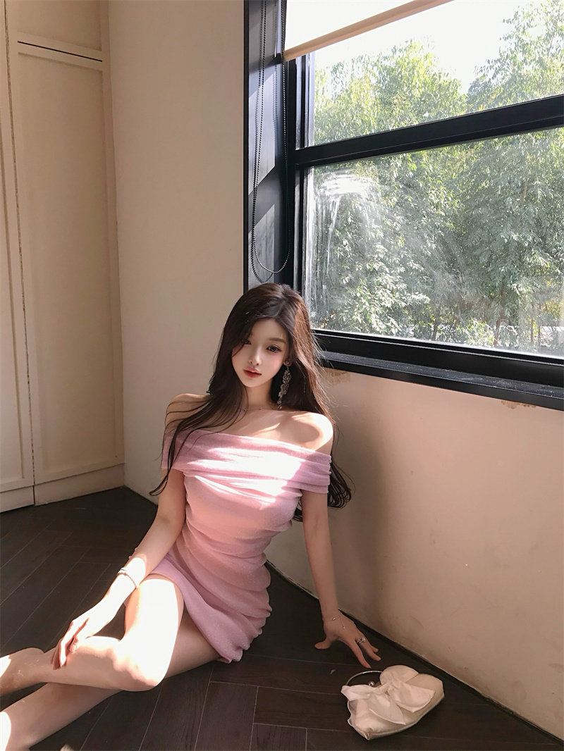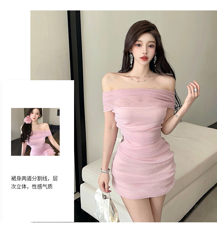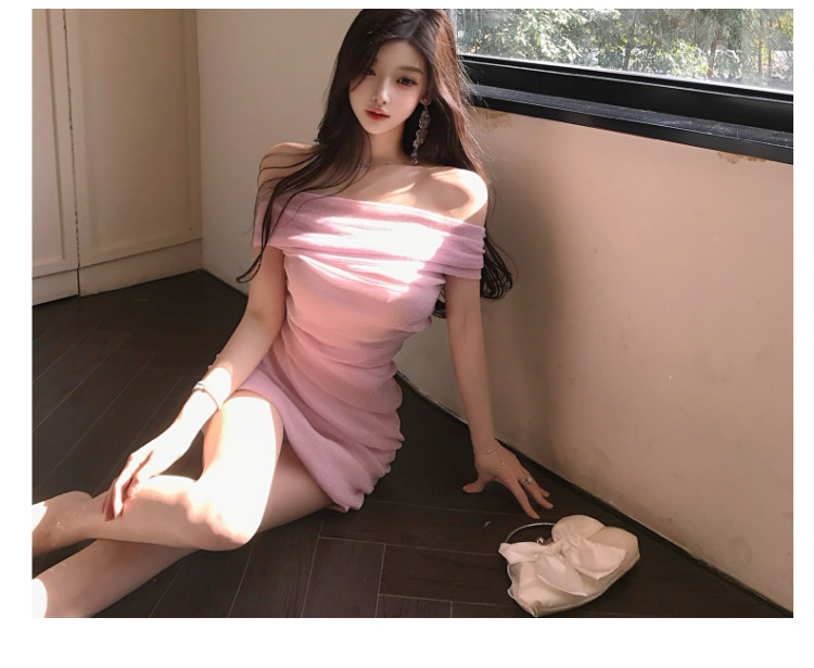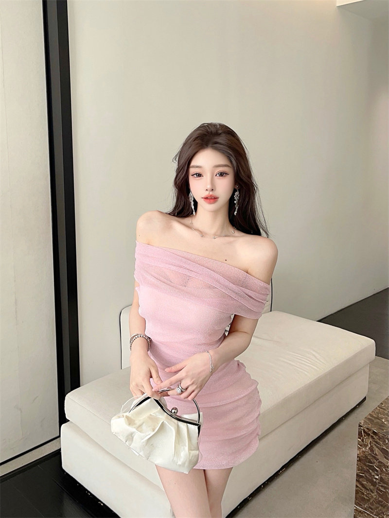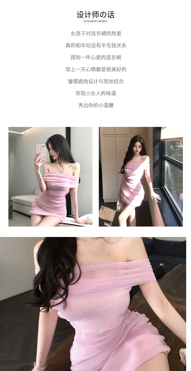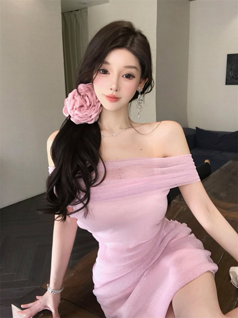 Pure desire style sexy pink strapless dress for women with a sense of luxury small stature temperament waist cinching and slimming hip hugging short skirt
