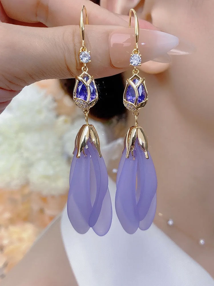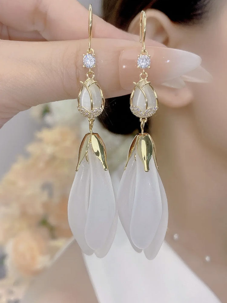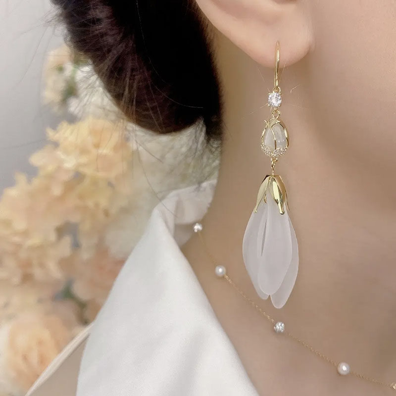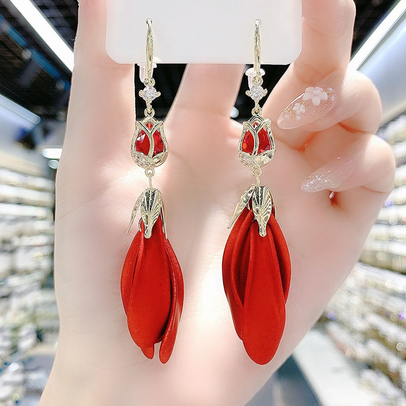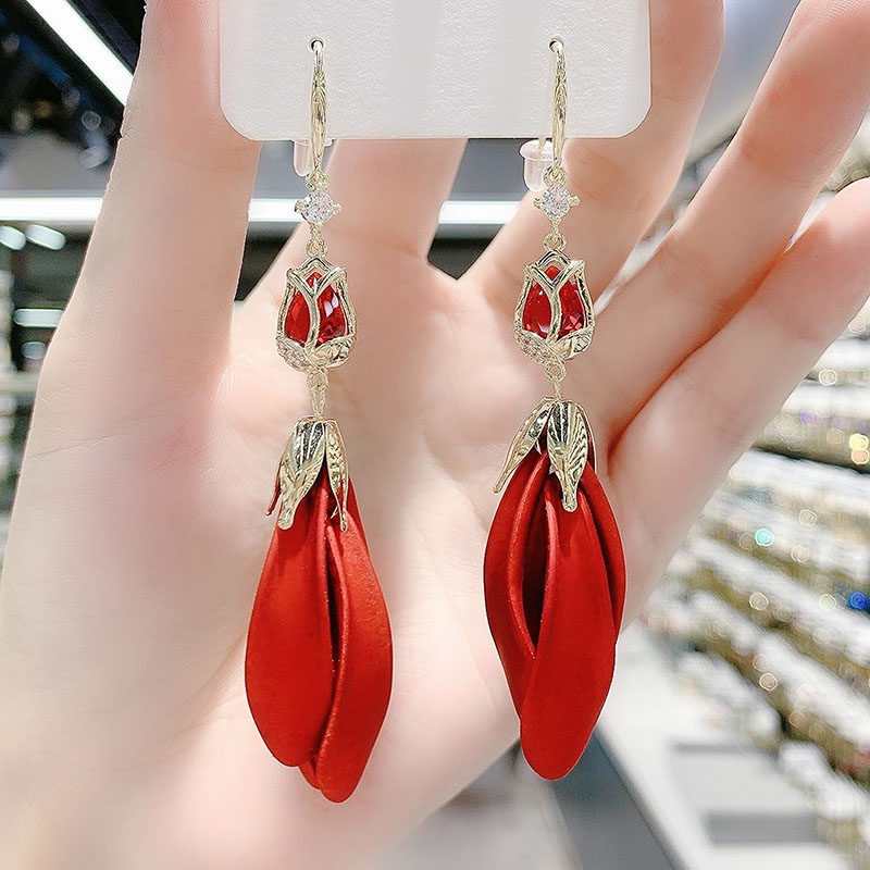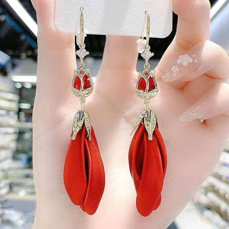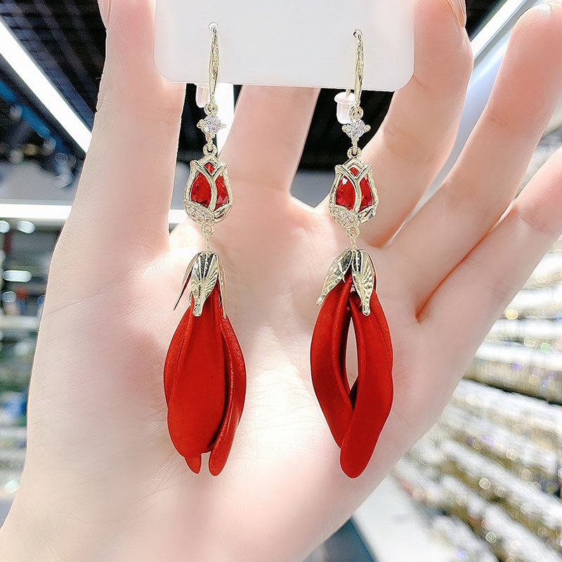 Red Tulip Petal Earrings 2025 New Trendy Long Style Tassel Eardrops Internet Red Design Earrings for Women