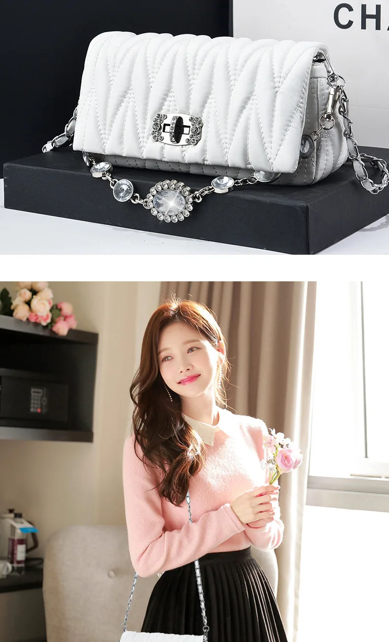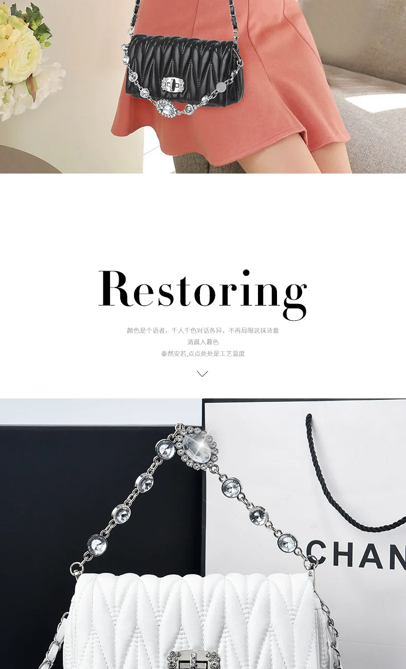 Women Bags Luxury Designer Purses and Handbags Rhinestone Chain Flap Crossbody Small Square Bag Casual Shoulder Messenger Bags