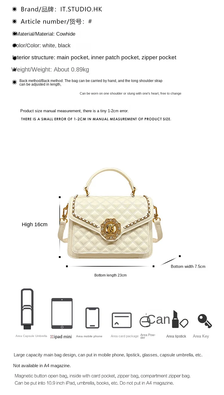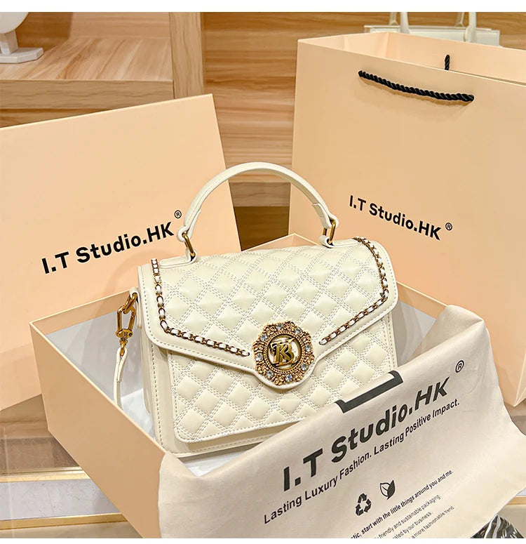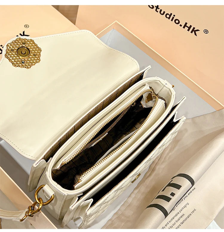 Women's handbag designer Lingge square bag women's 2024 new high-end texture handbag autumn/winter crossbody shoulder bag