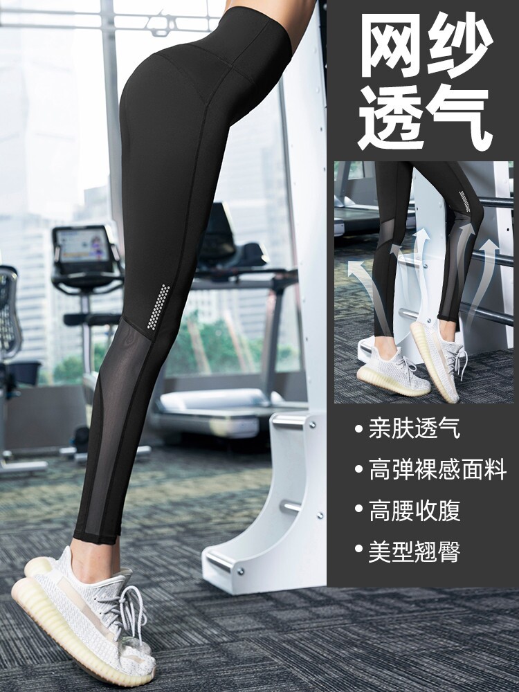 Yoga pants for fitness high waist abdominal compression breathable quick drying slimming running mesh tight pants women s outdoor wear